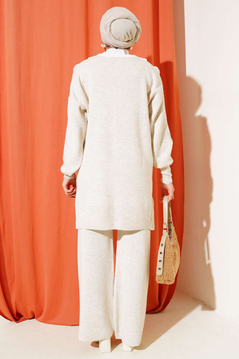 Dikiş Detaylı Basic Triko İkili Takım Vizon