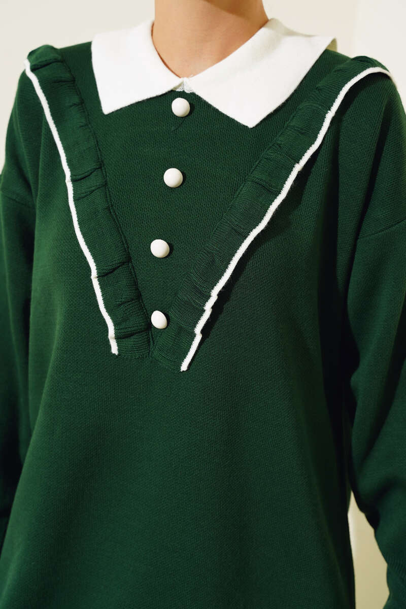 Balon Kol Balıkçı Yaka Triko İkili Takım Yağ Yeşili
