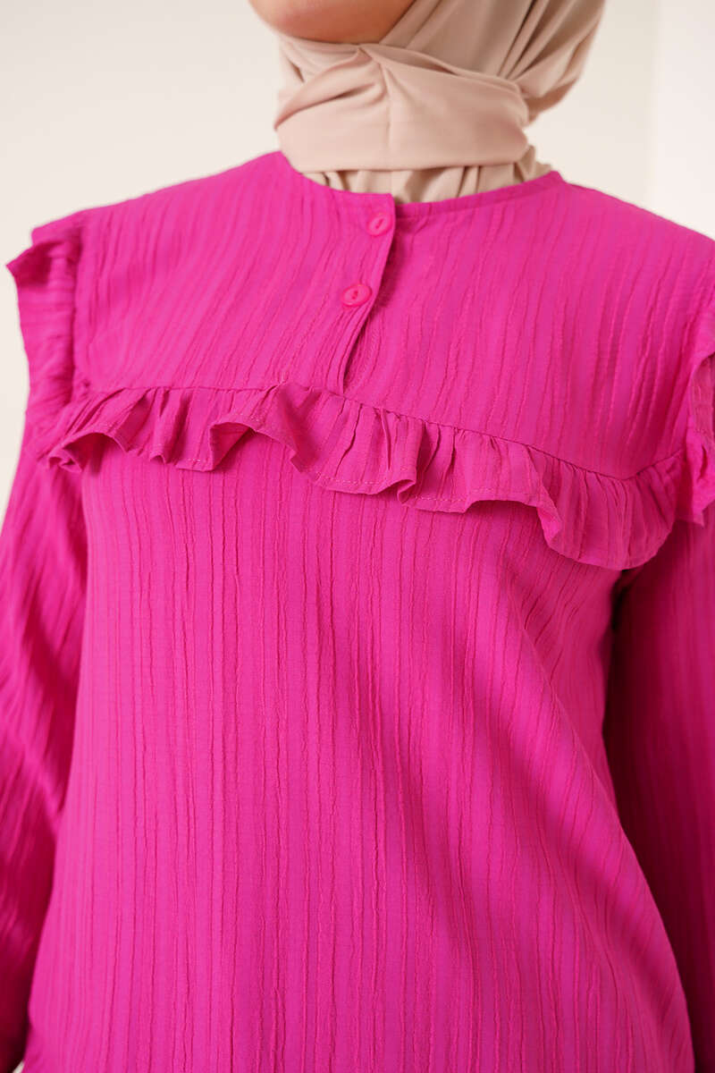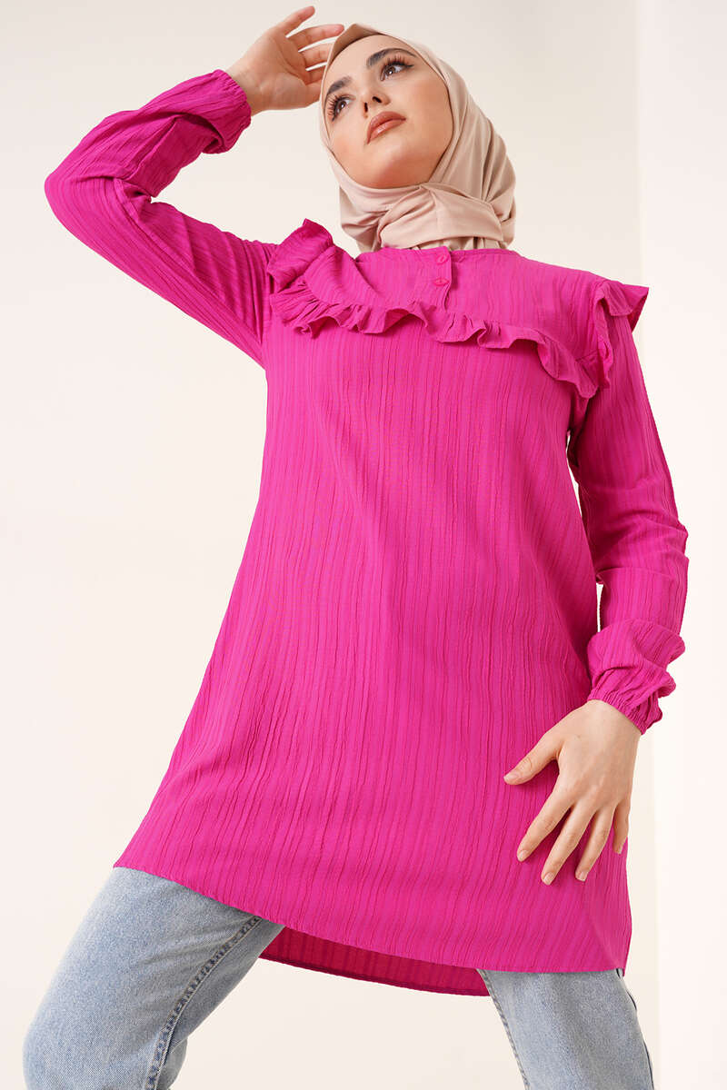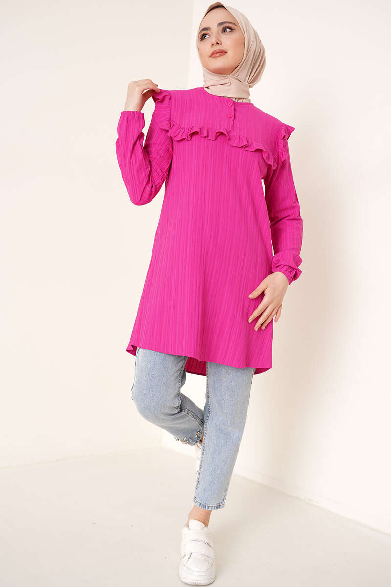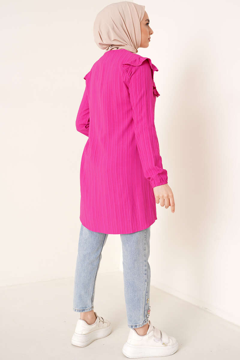 Fırfırlı İki Düğmeli Tunik Fuşya
