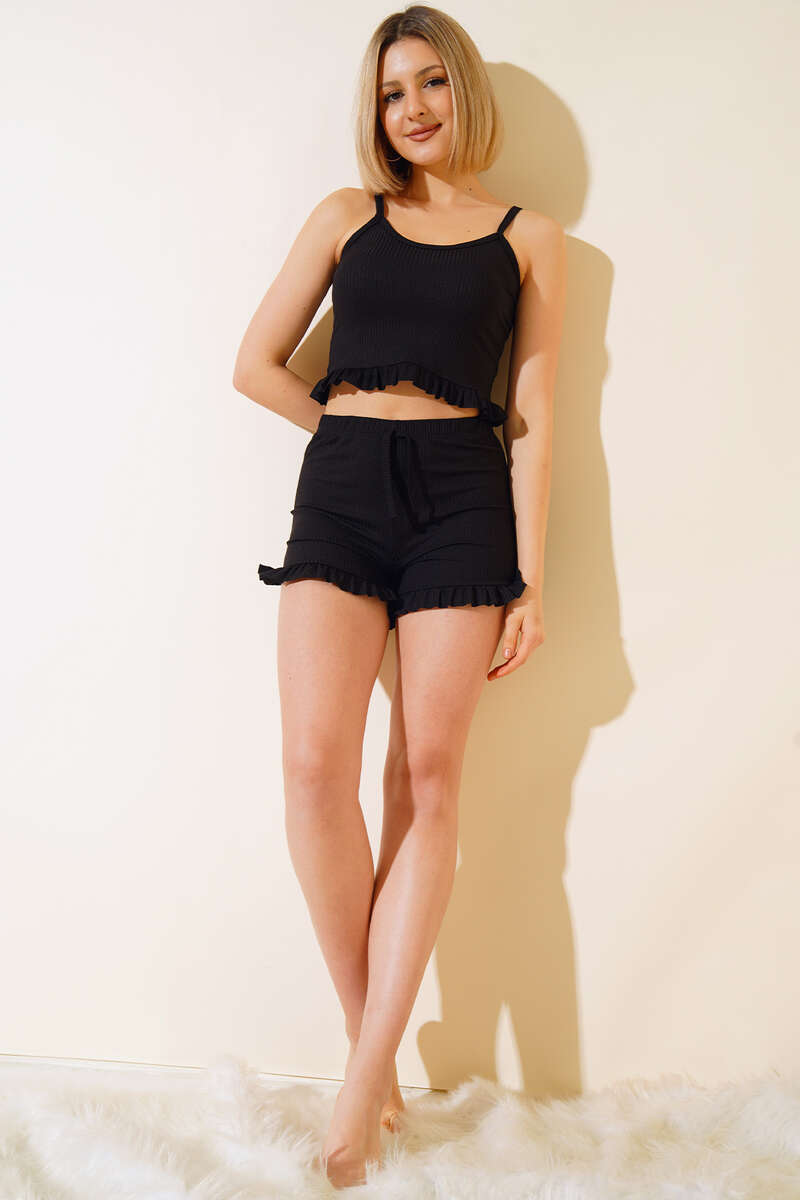 Fırfırlı İkili Takım Siyah