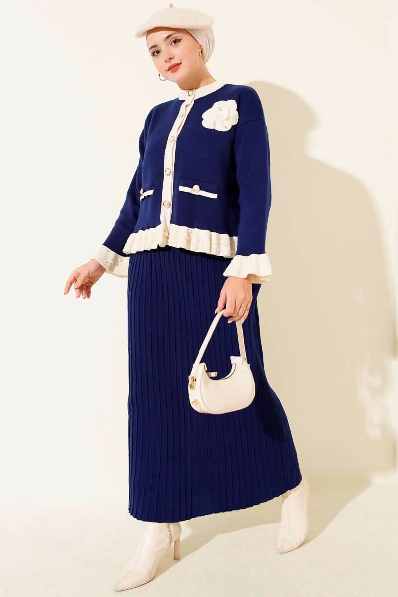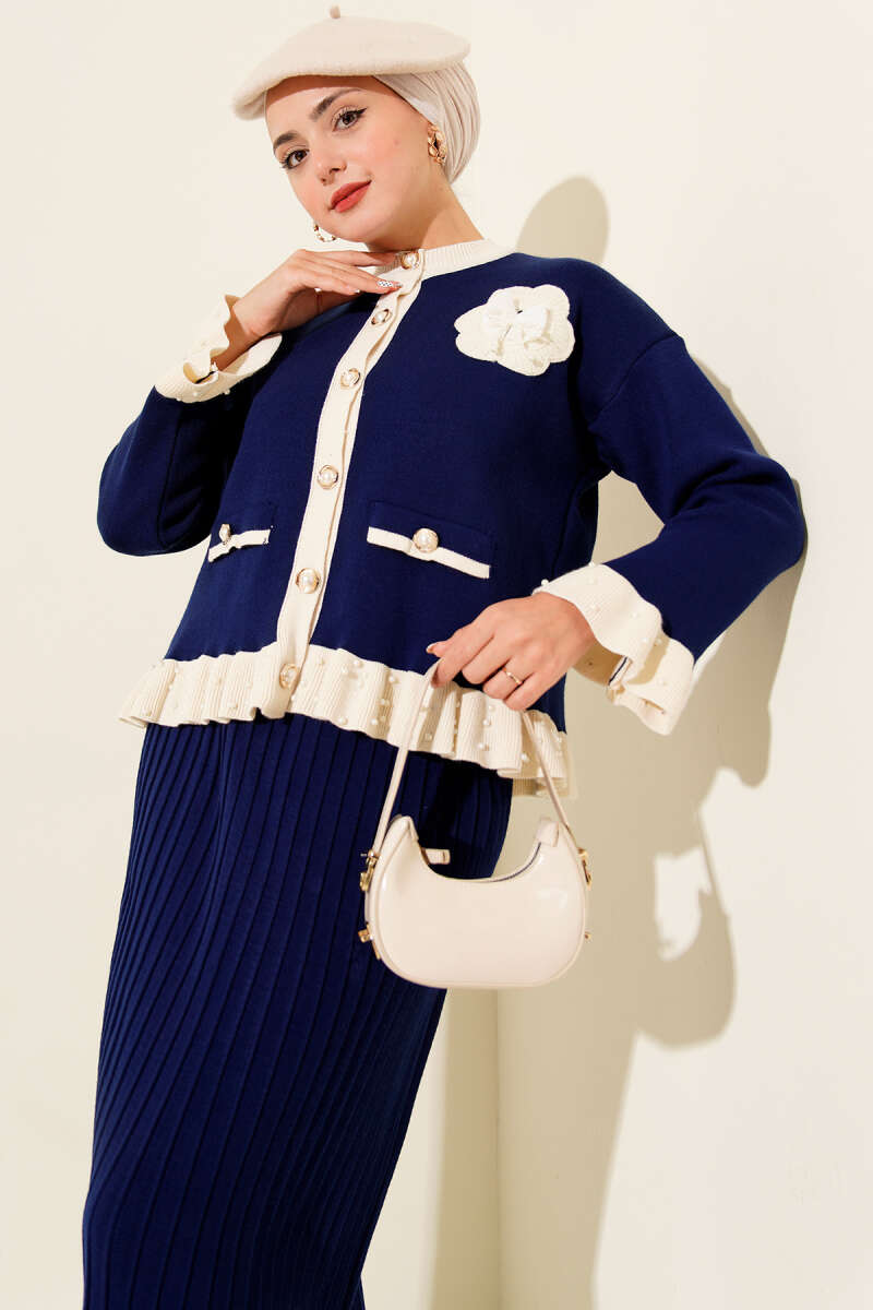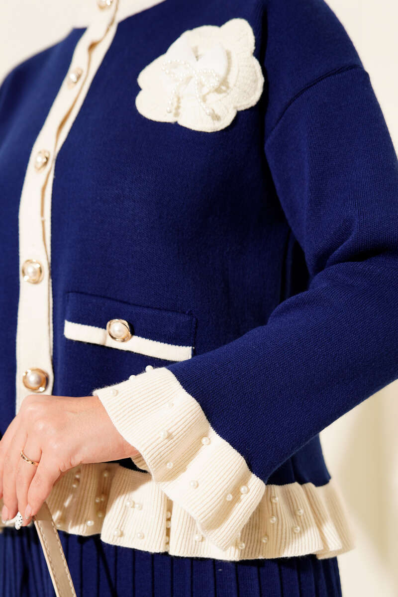Metal Düğmeli Kolsuz Kaşkorse İkili Takım Lacivert