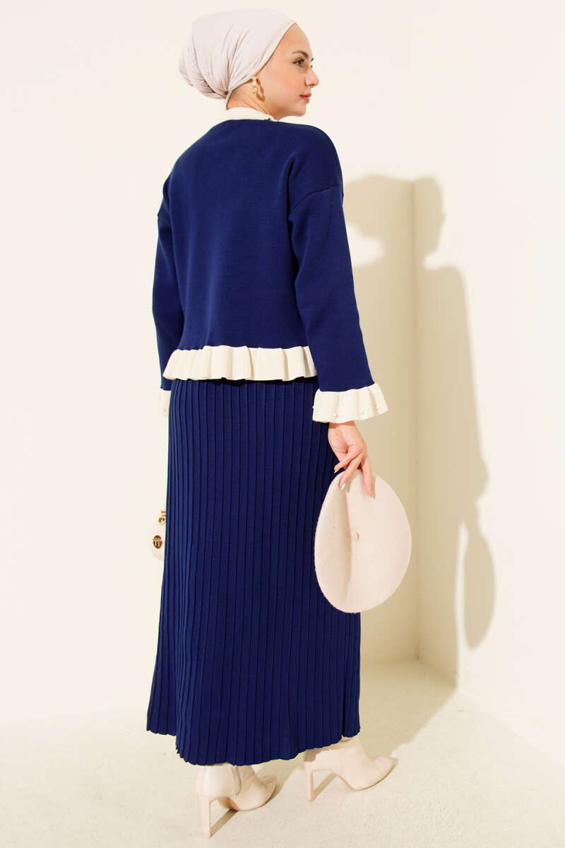 Fırfırlı İncili Etekli Triko İkili Takım Kahve