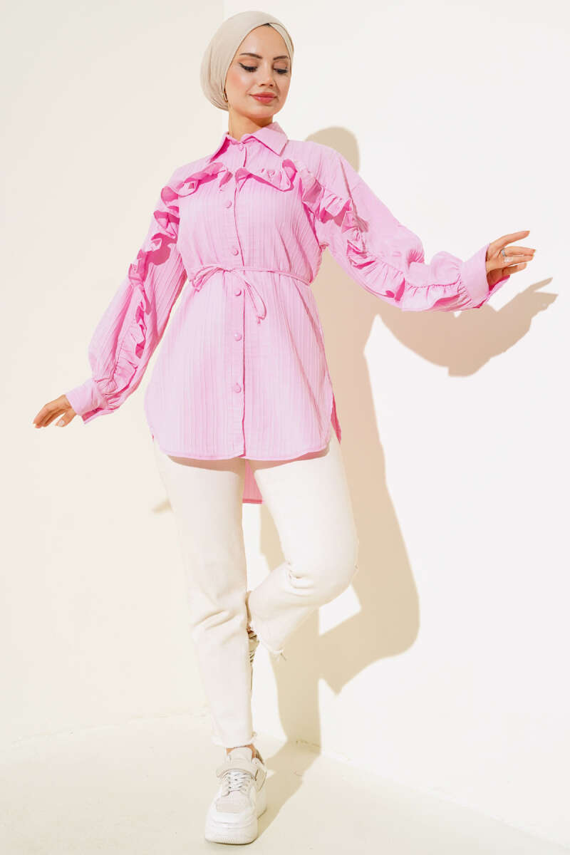 Fırfırlı İp Bağcıklı Gömlek Siyah