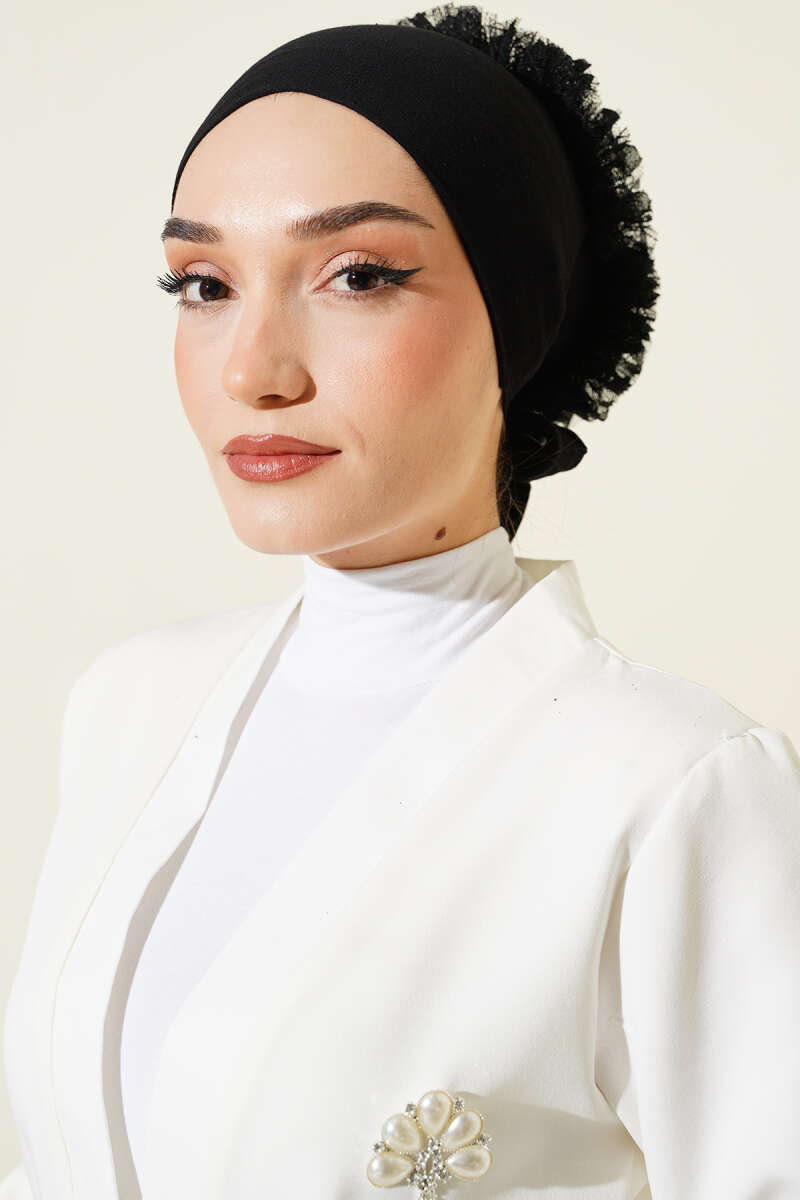 Fırfırlı Kaymaz Viskon Bone Ekru