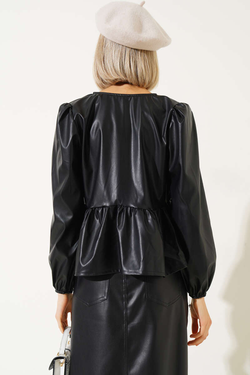 Düğmeli Gömlek Yaka Keçe Ceket Siyah