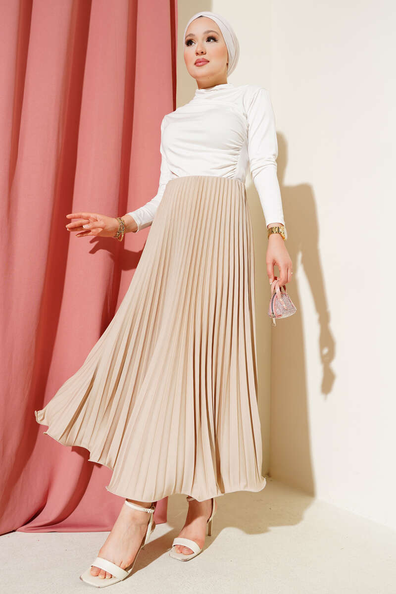 Ekoseli Kloş Etek Bej