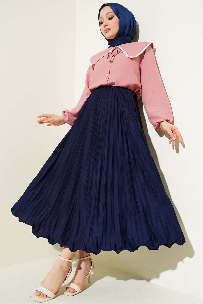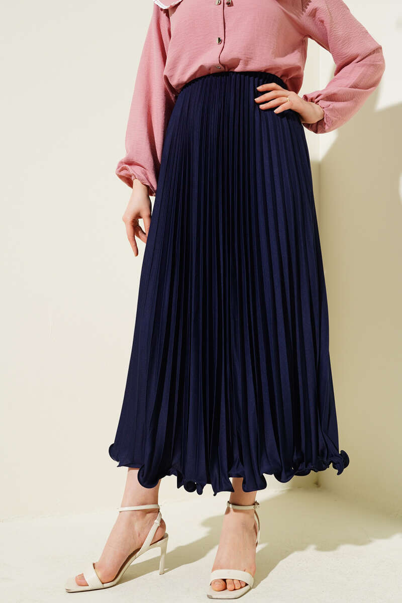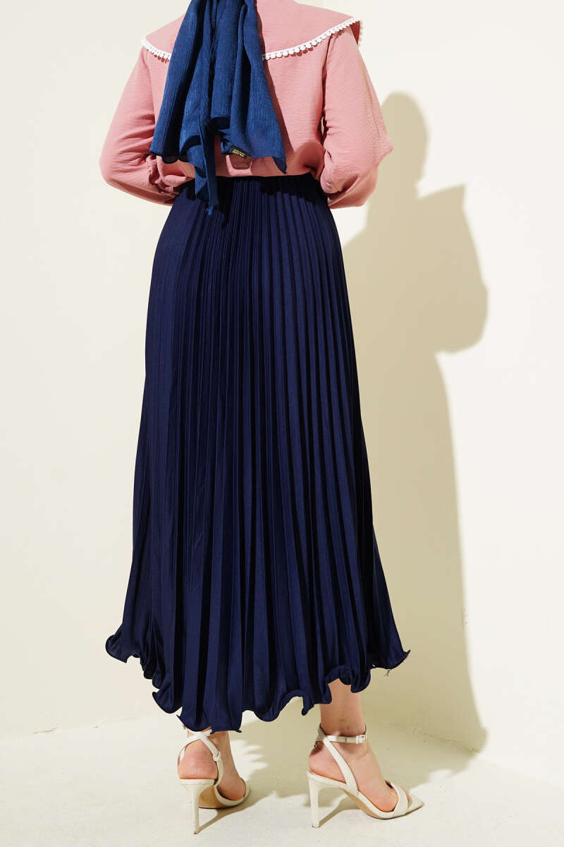 Bel Lastikli Kloş Kaşe Etek Lacivert