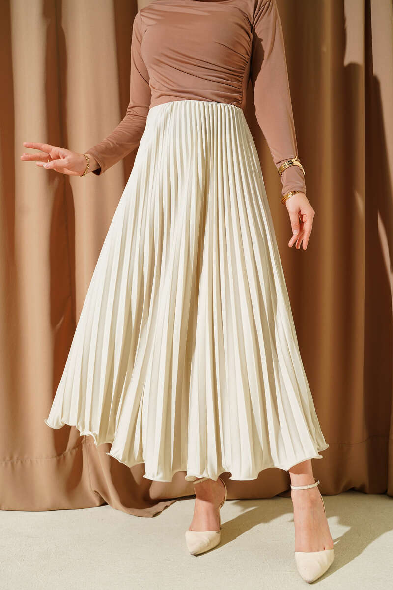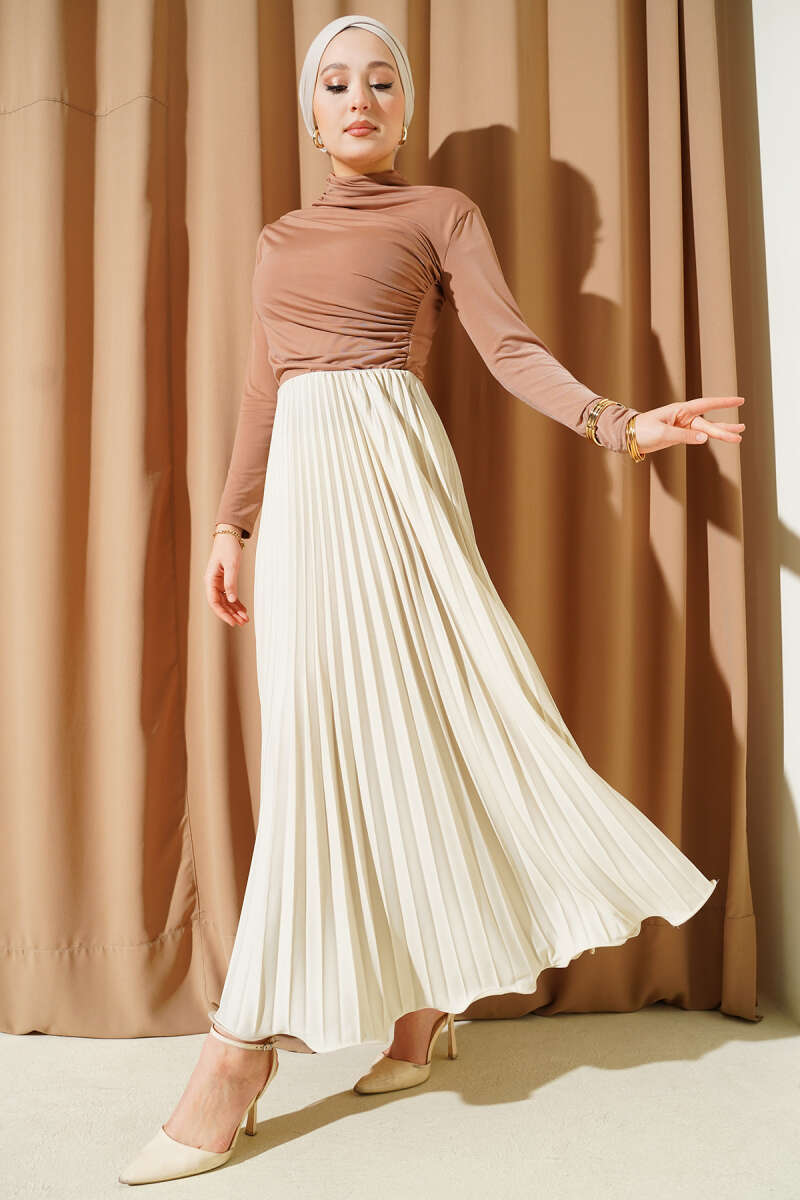 Fırfırlı Pileli Bel Lastikli Etek Taş