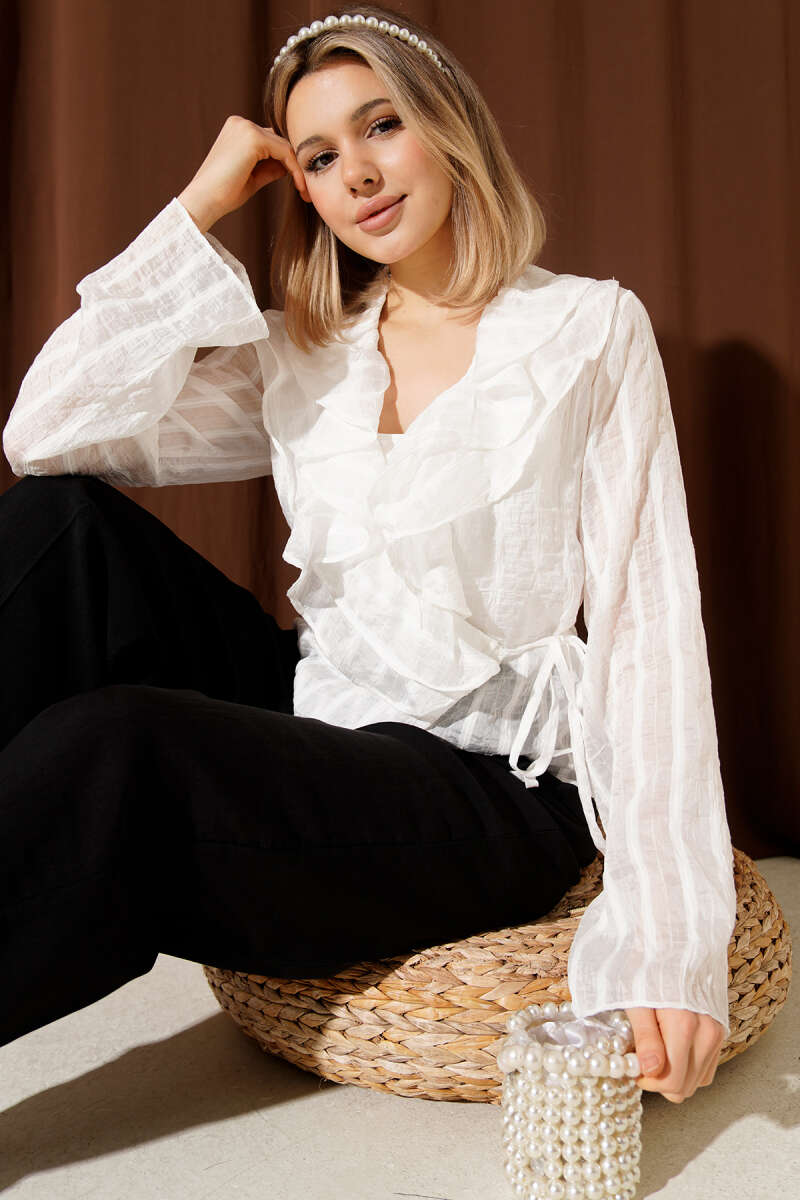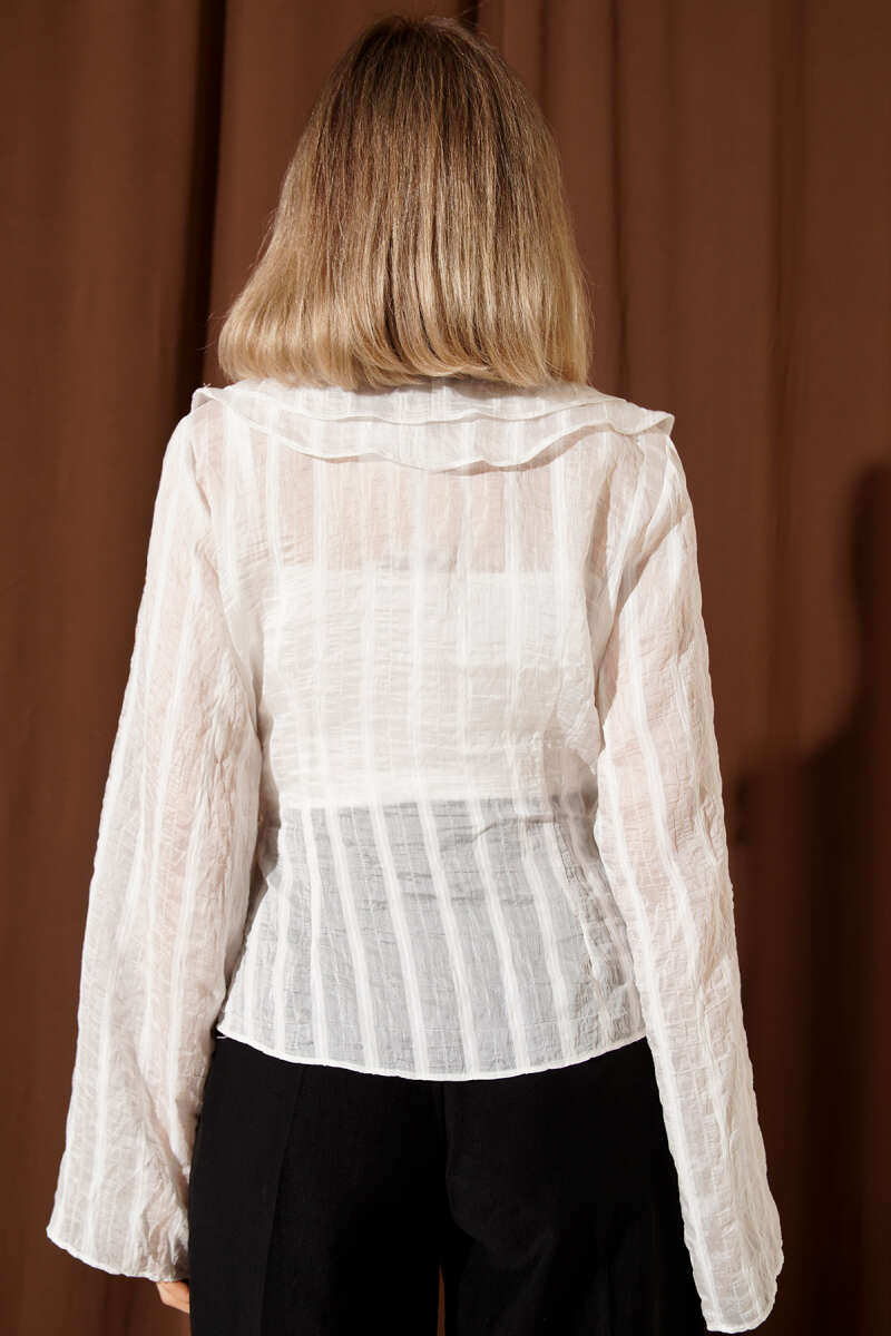 Fırfırlı Transparan Bluz Ekru