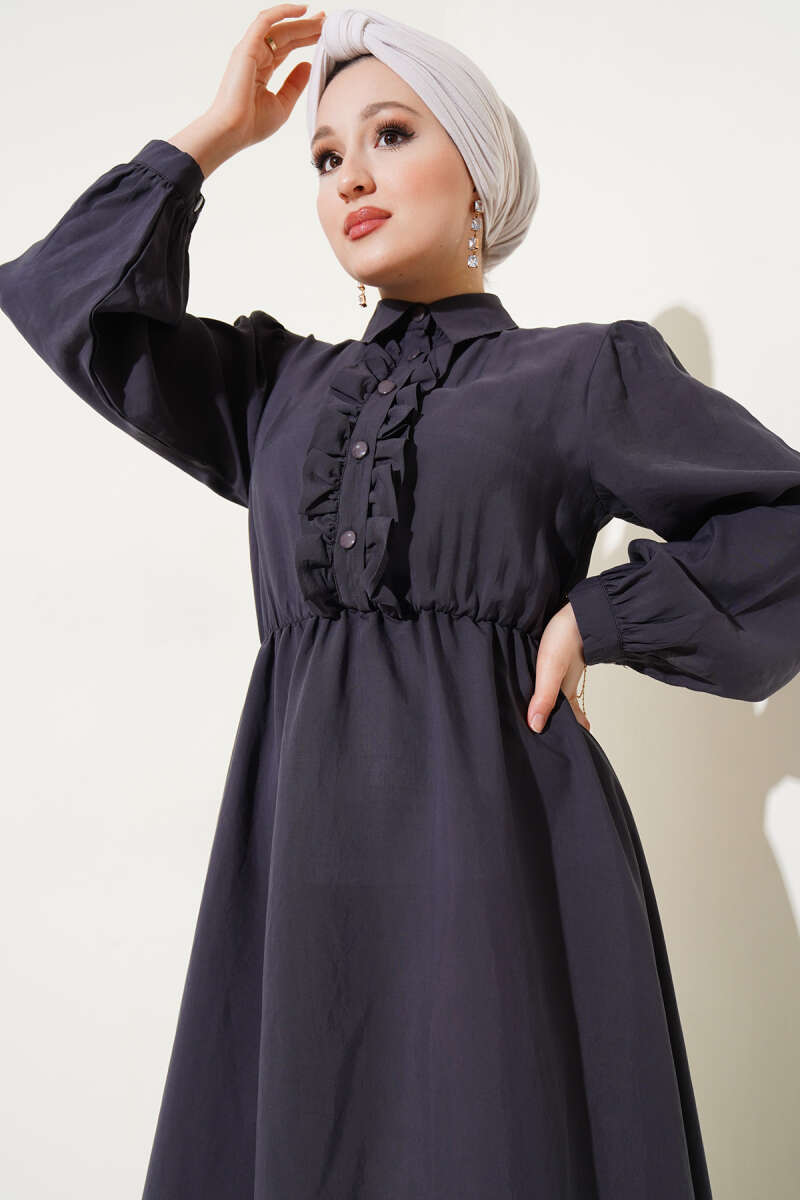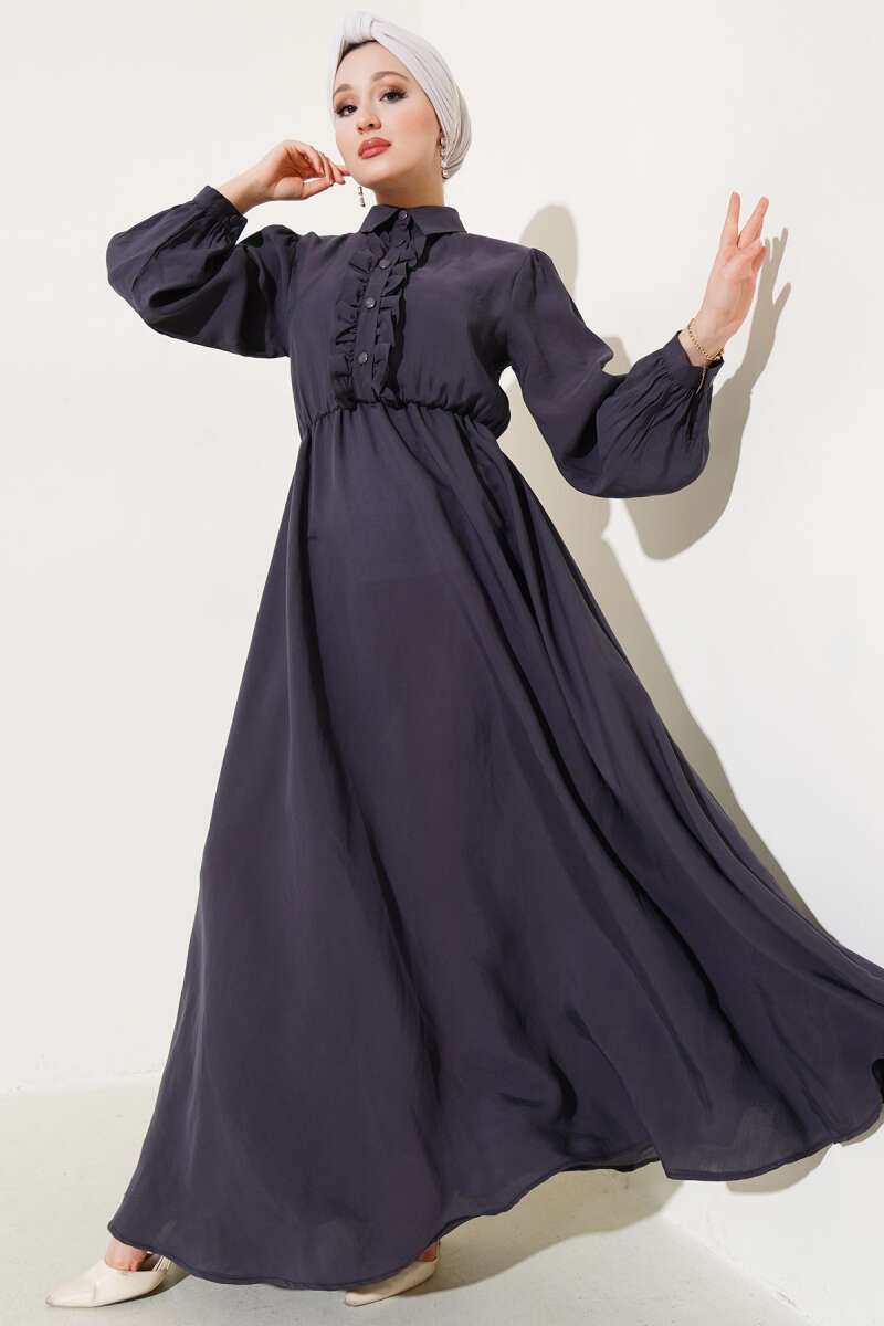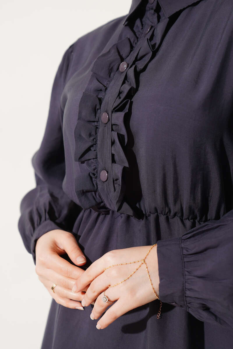 Gömlek Yaka Düğmeli Triko Elbise Nefti