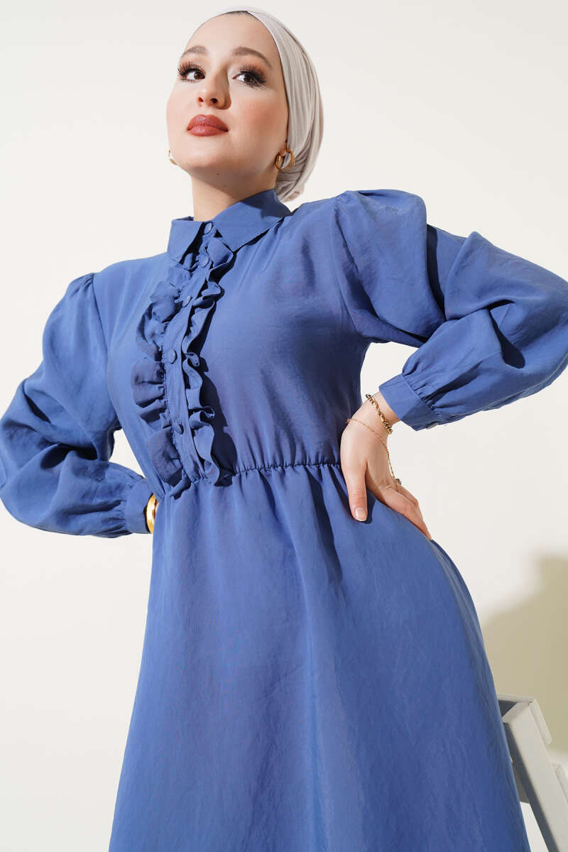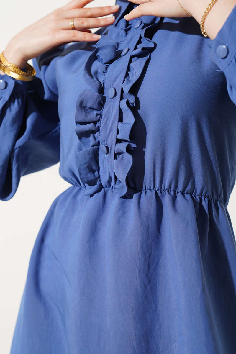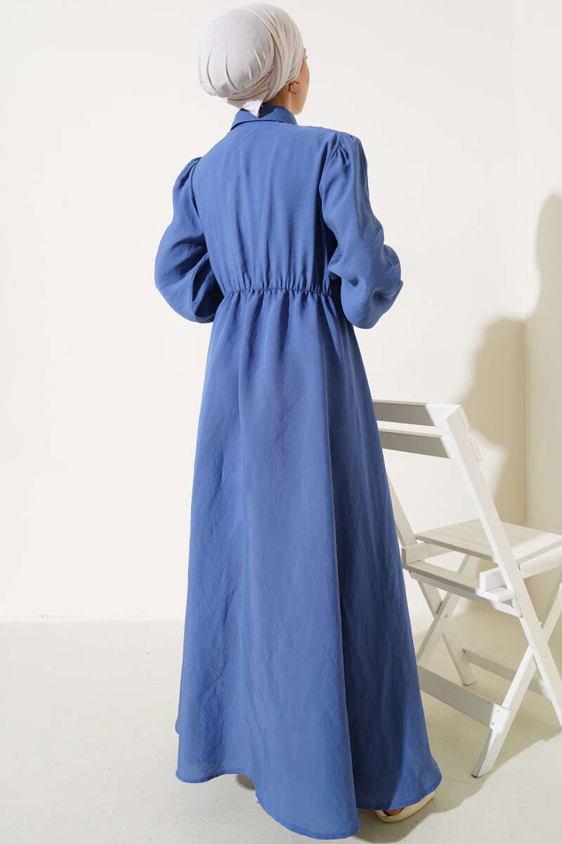 Metal Düğmeli Kolsuz Kot Elbise Koyu Mavi