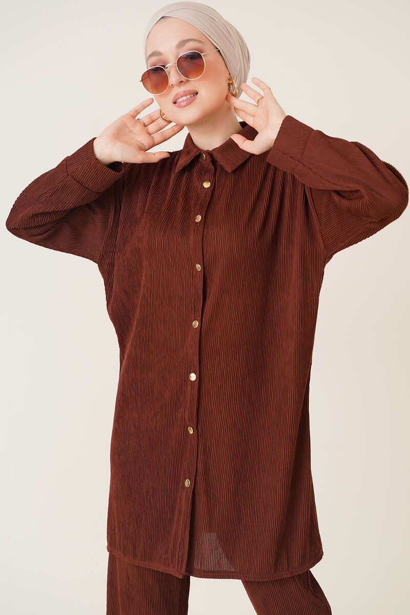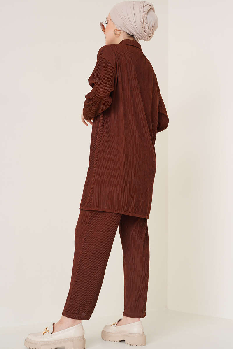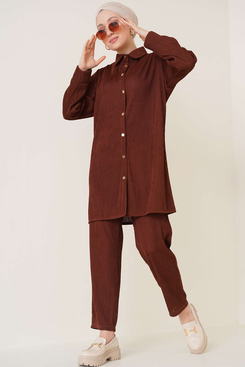 Yeni sezon ikili takımımız dikkat çeken tasarımıyla sizler için geldi. Takımımız fitilli kumaştan yapılmıştır. Oldukça şık yapıdadır. Gömleğimizin önü düğmelidir. Uzun yapıdadır. Pantolon beli lastikli cepsiz modeldir. Sportif ve rahattır. Her ortamda rahatlıkla giyebilirsiniz. Farklı renk seçenekleri mevcuttur.