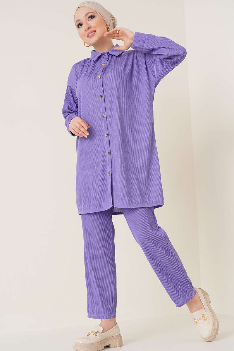 Yeni sezon ikili takımımız dikkat çeken tasarımıyla sizler için geldi. Takımımız fitilli kumaştan yapılmıştır. Oldukça şık yapıdadır. Gömleğimizin önü düğmelidir. Uzun yapıdadır. Pantolon beli lastikli cepsiz modeldir. Sportif ve rahattır. Her ortamda rahatlıkla giyebilirsiniz. Farklı renk seçenekleri mevcuttur.
