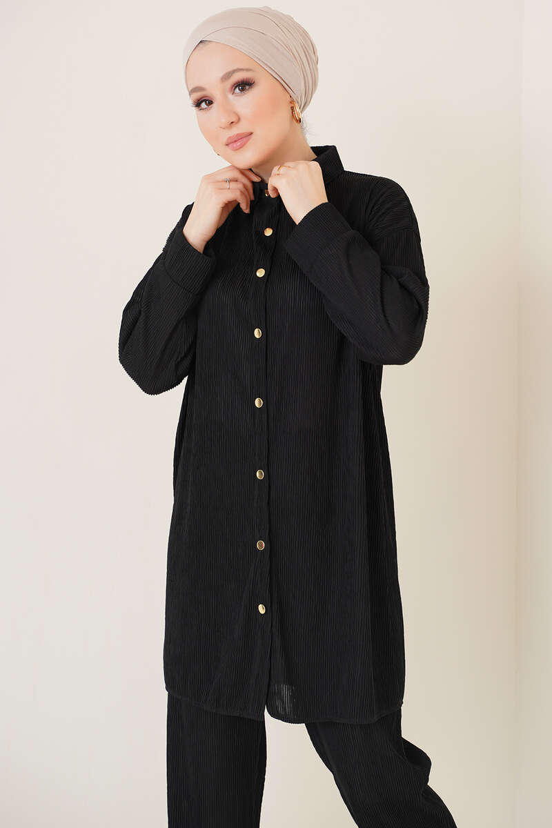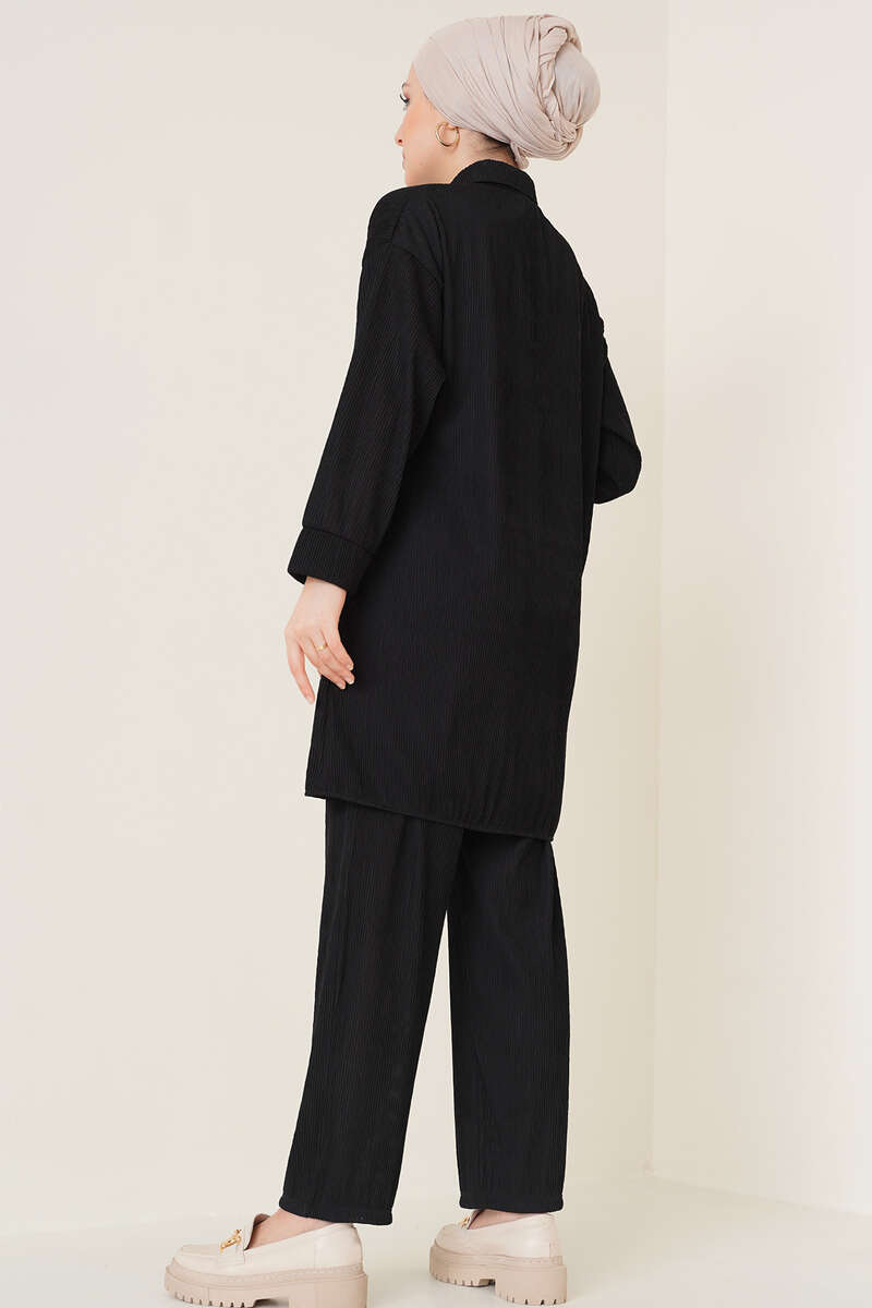 Yeni sezon ikili takımımız dikkat çeken tasarımıyla sizler için geldi. Takımımız fitilli kumaştan yapılmıştır. Oldukça şık yapıdadır. Gömleğimizin önü düğmelidir. Uzun yapıdadır. Pantolon beli lastikli cepsiz modeldir. Sportif ve rahattır. Her ortamda rahatlıkla giyebilirsiniz. Farklı renk seçenekleri mevcuttur.