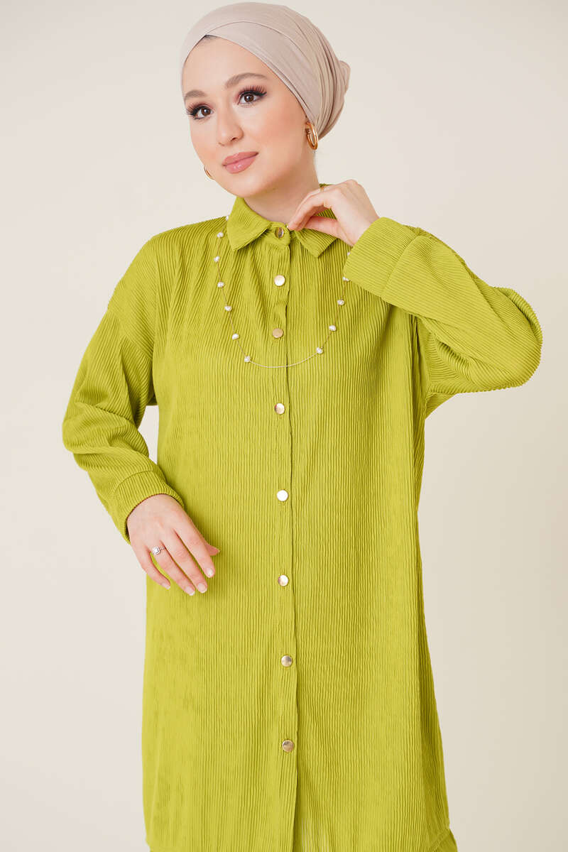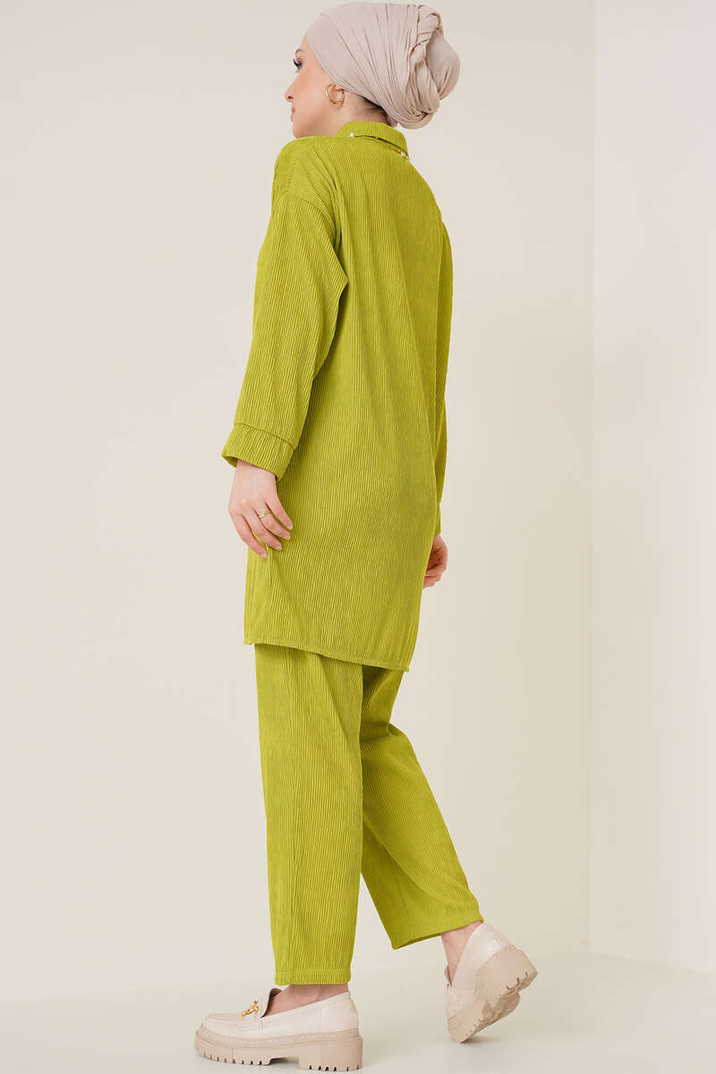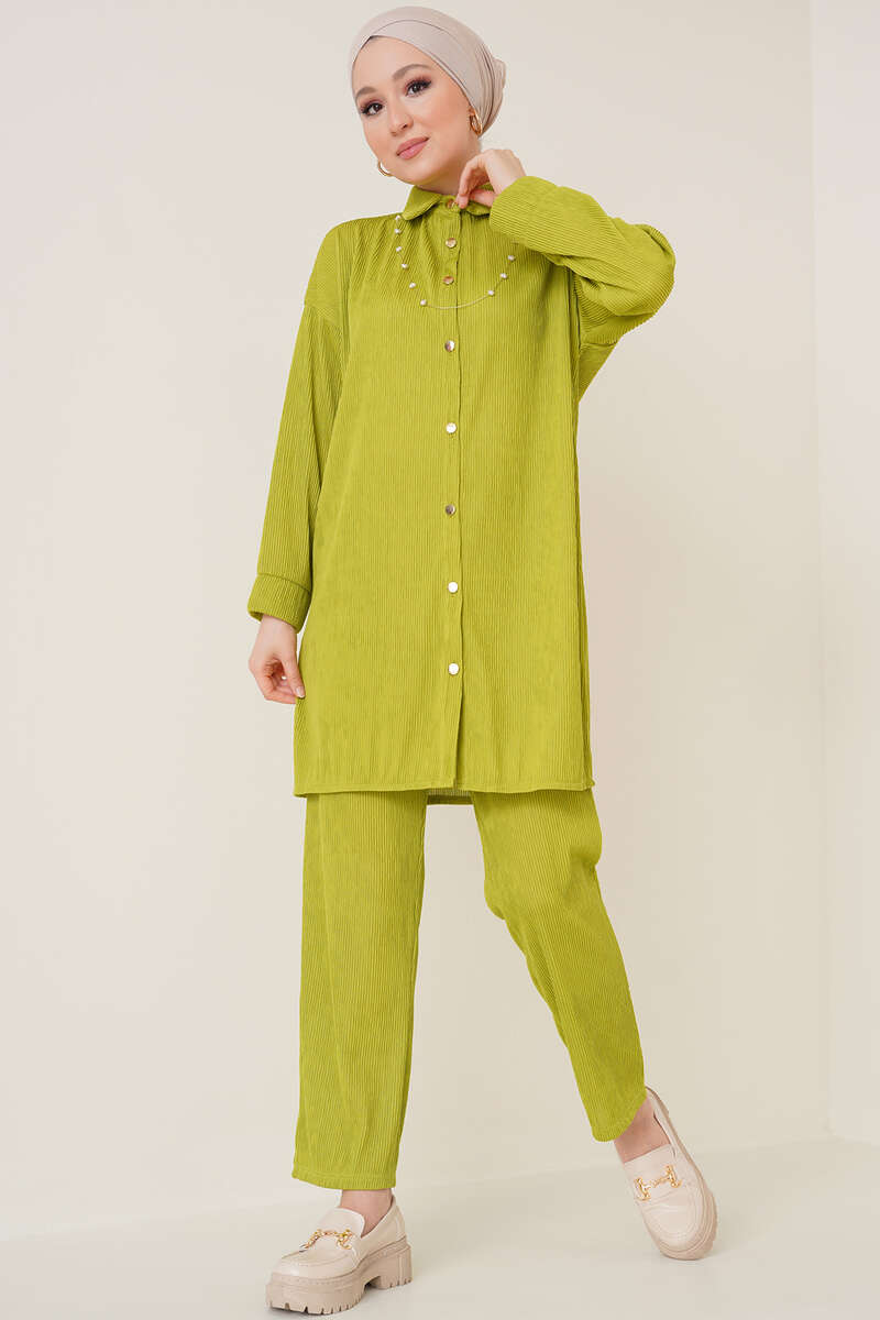 Fitil Detaylı İkili Takım Yağ Yeşili