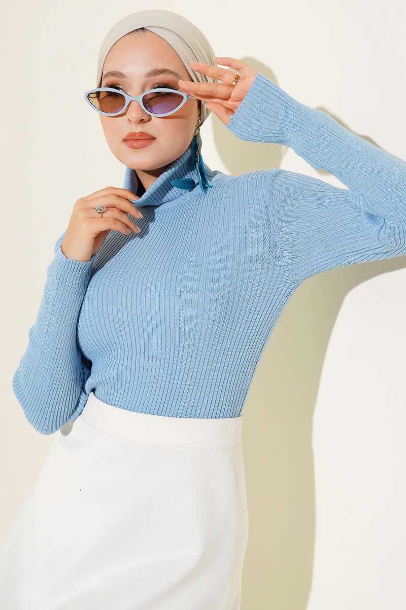 Fitilli Balıkçı Yaka Triko Kazak Bebe Mavi