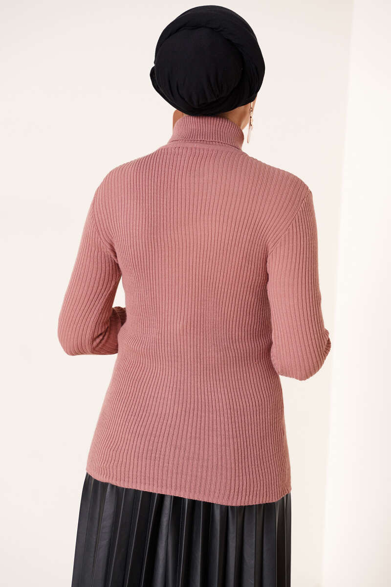 Fitilli Balıkçı Yaka Triko Kazak Gül Kurusu
