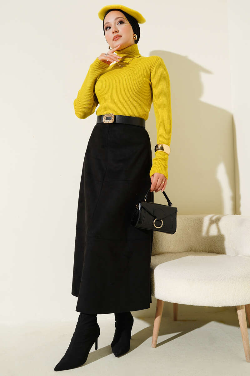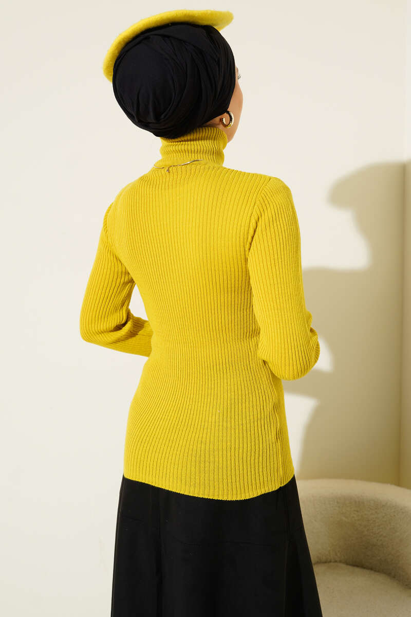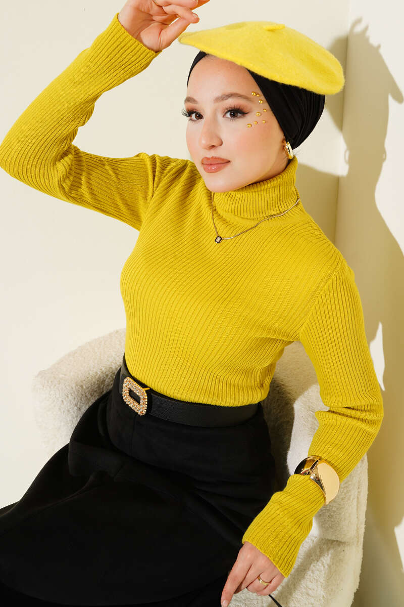 Fitilli Balıkçı Yaka Triko Kazak Hardal