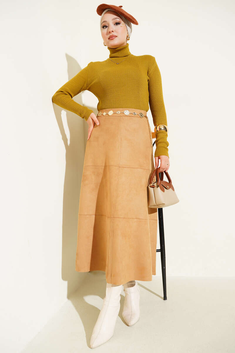 Bisiklet Yaka Sakal Detaylı Kazak Kahve
