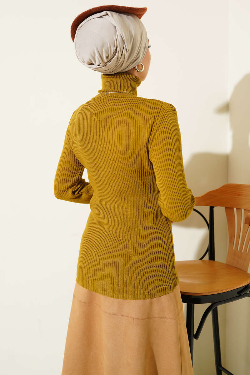 Fitilli Balıkçı Yaka Triko Kazak Yağ Yeşili