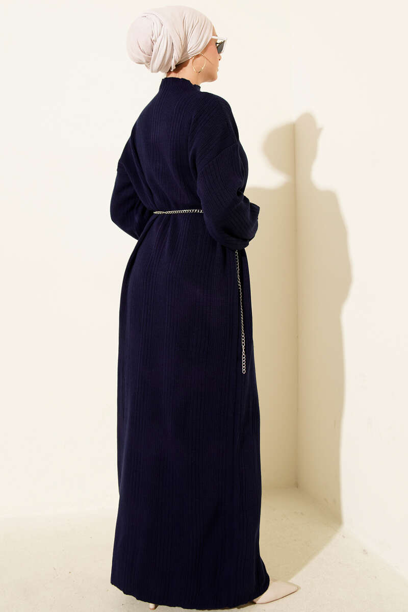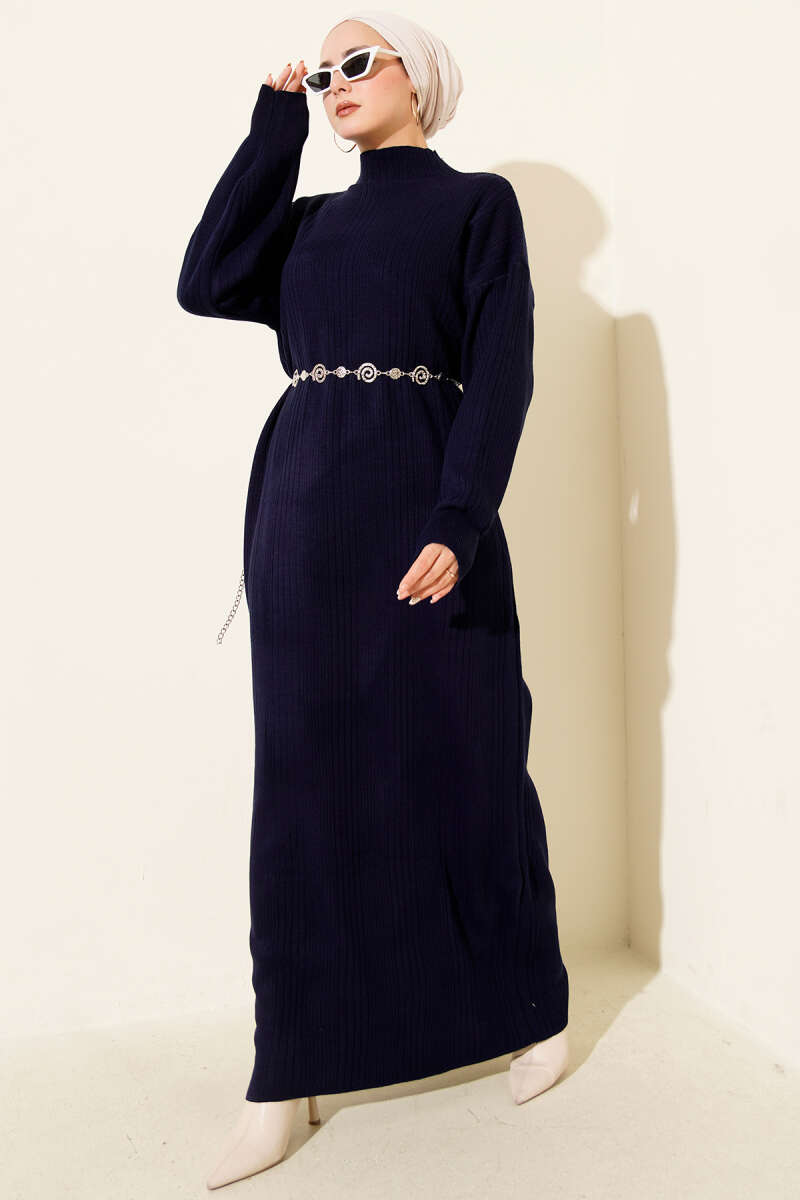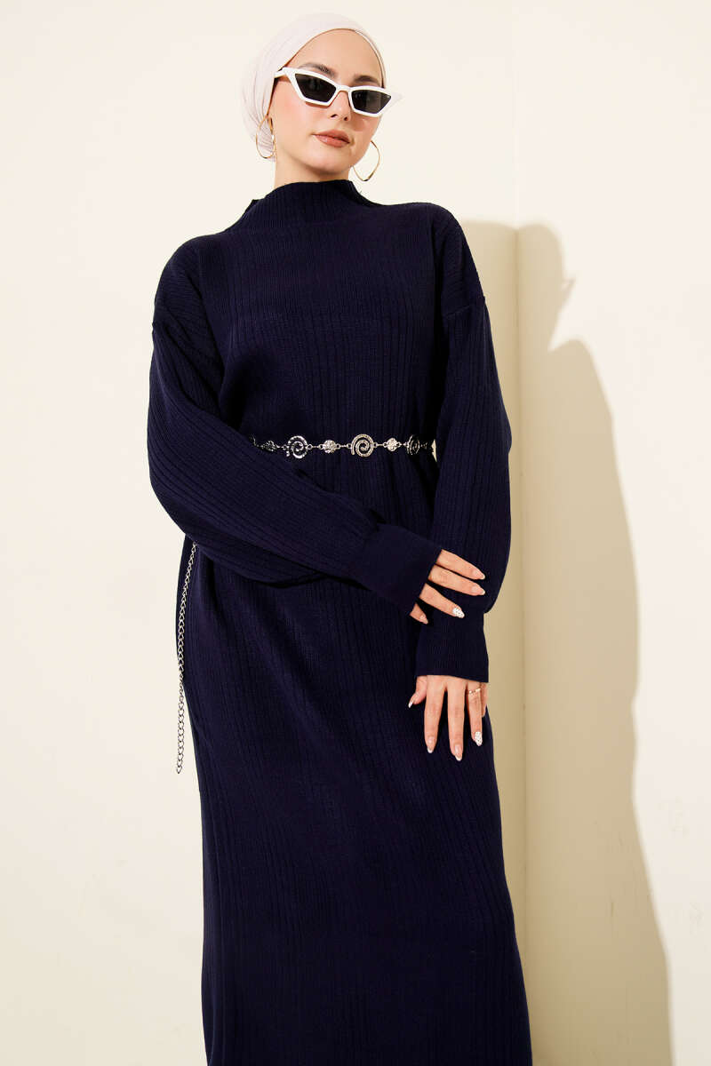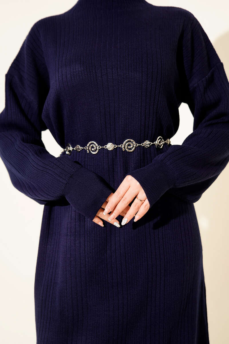 Fitilli Basic Triko Elbise Taş