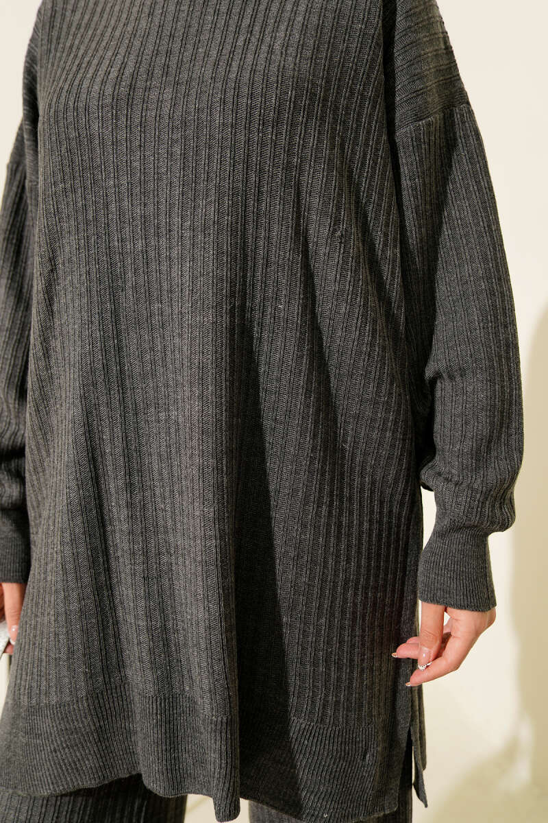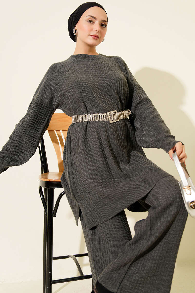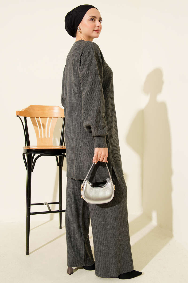 Yaka Çıtçıtlı Kapüşonlu İkili Takım Füme