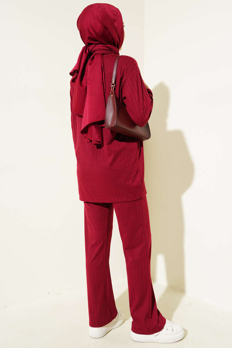Yan Bağlamalı Kadife Fitilli İkili Takım Mor