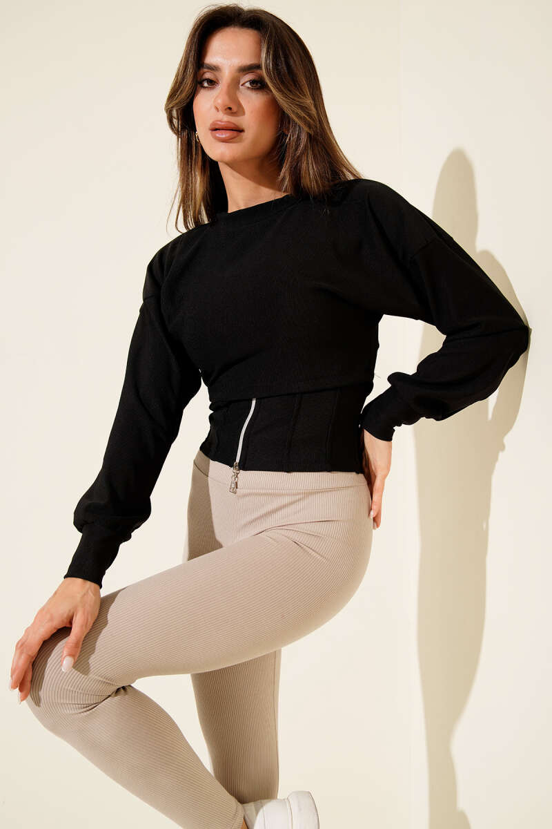 Bisiklet Yaka Örme Triko Erkek Kazak Siyah