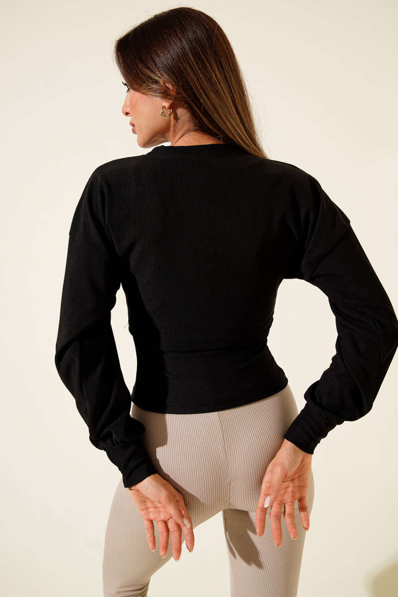 Kruvaze Yaka Kuşaklı Kaşe Ceket Siyah