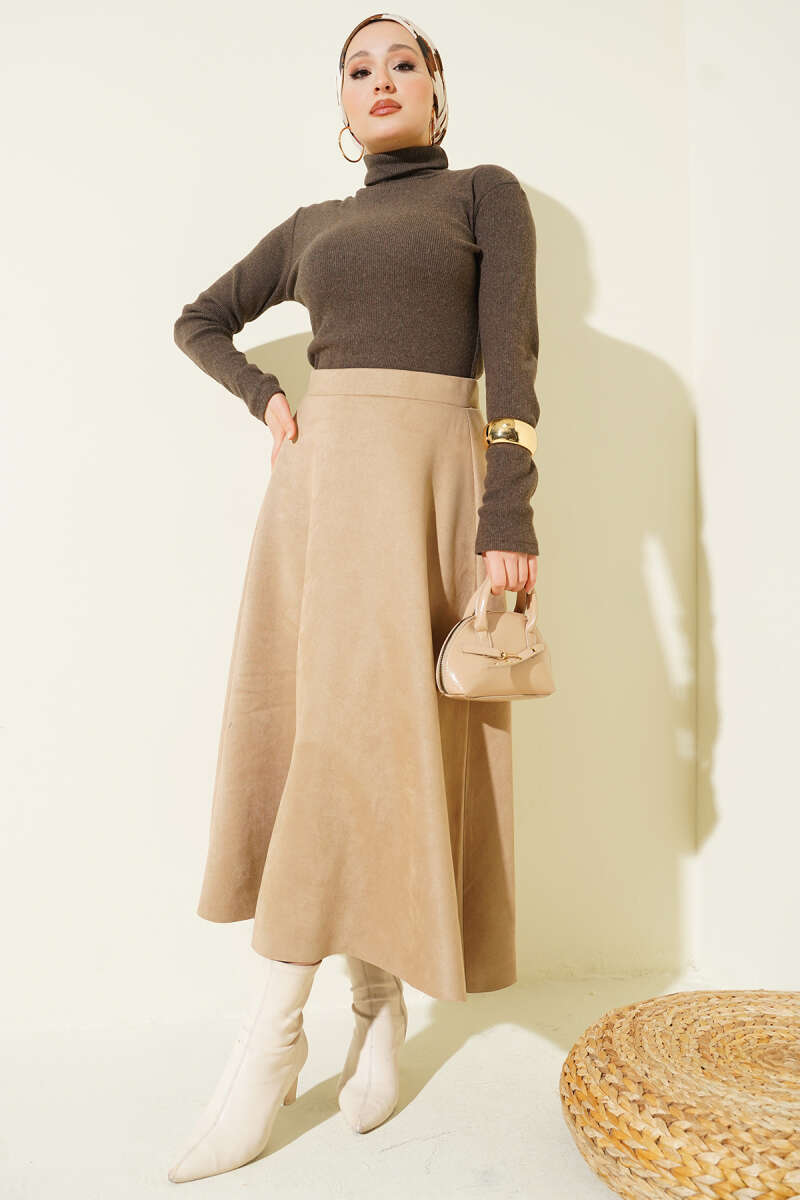 Bel Lastikli Süet Etek Lacivert