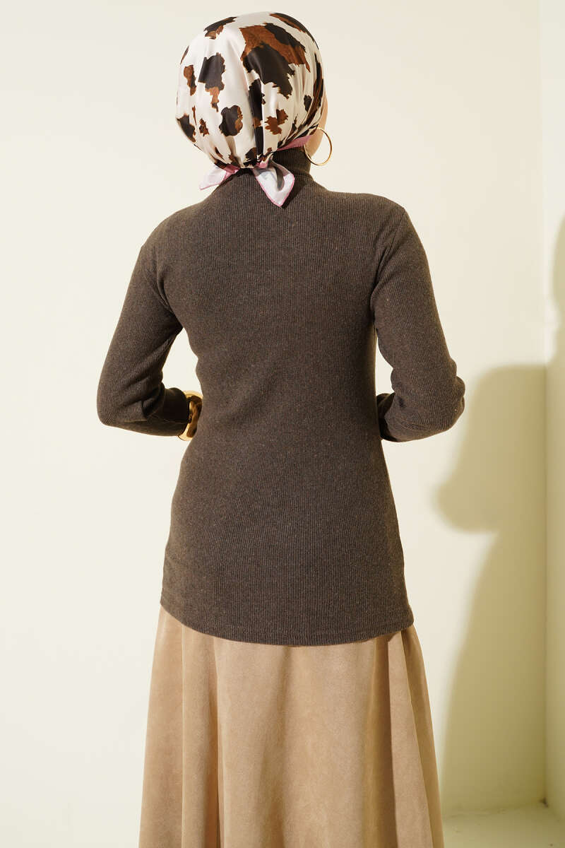 Bisiklet Yaka Fitilli Bluz Kahve