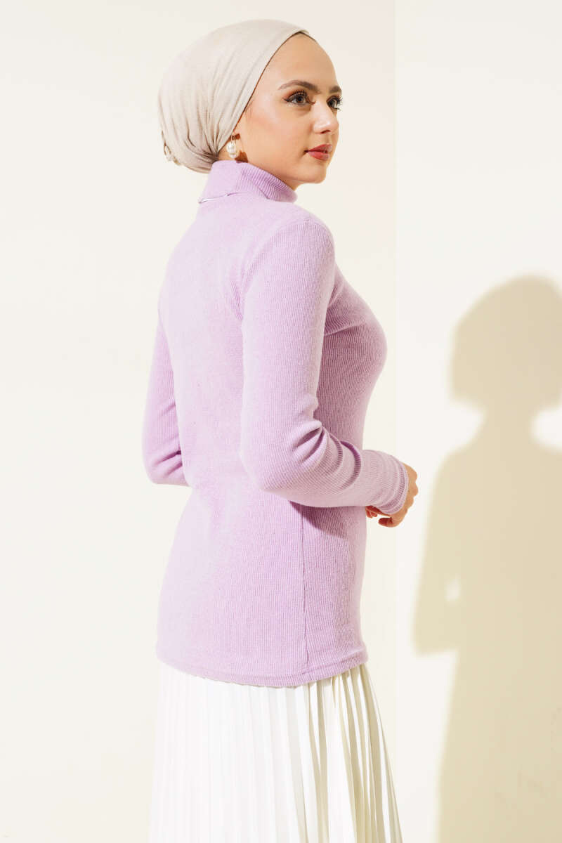 Fitilli Boğazlı Body Menekşe