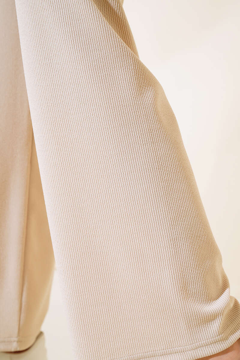 Dar Paça Pileli Kumaş Pantolon Pudra