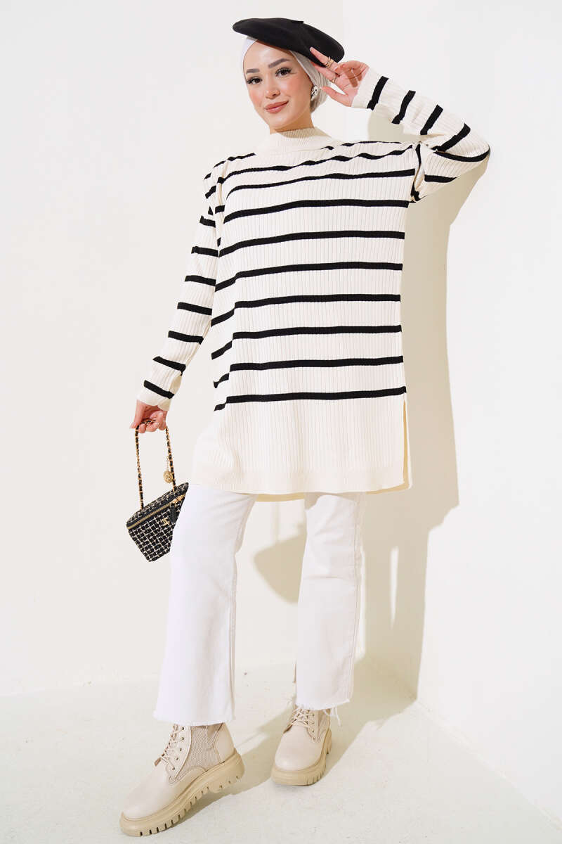 Çoban Dikiş Detaylı Triko Tunik Siyah