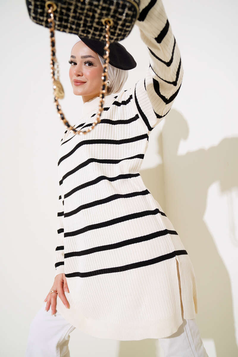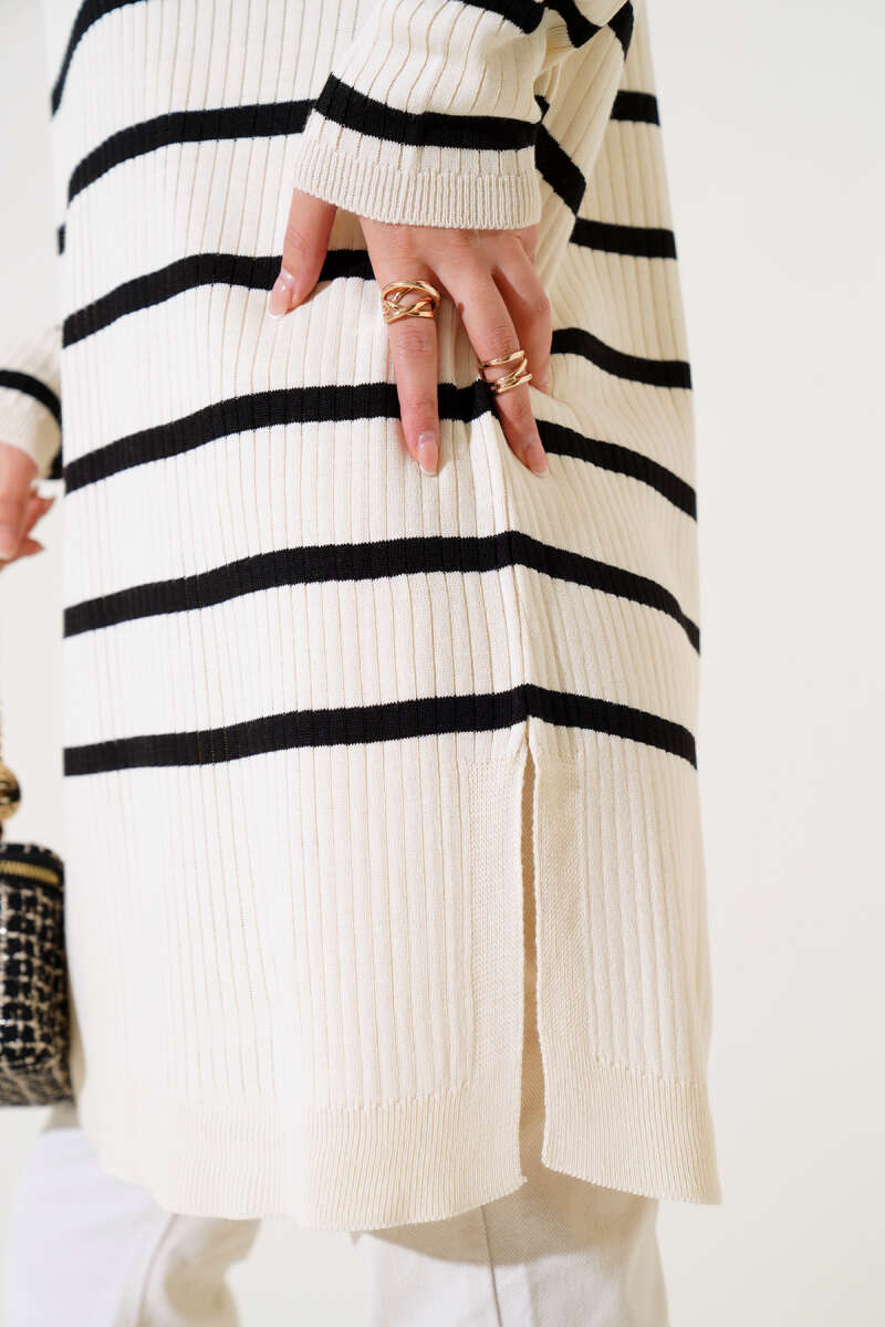 Yatay Kalın Çizgili Triko Tunik Bordo