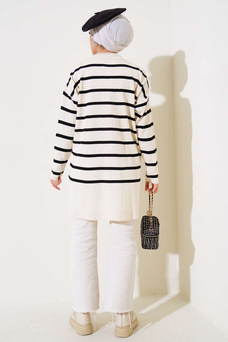 Zebra Desen Angora Detaylı Triko Hırka Gri