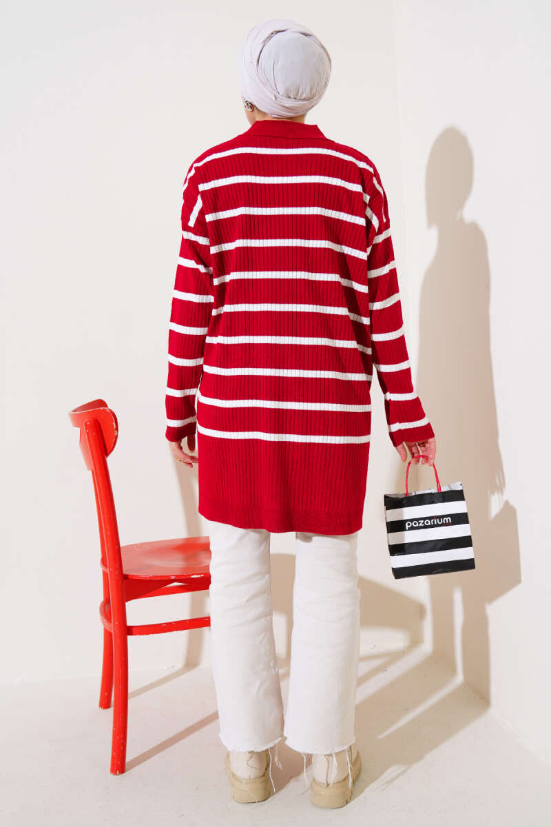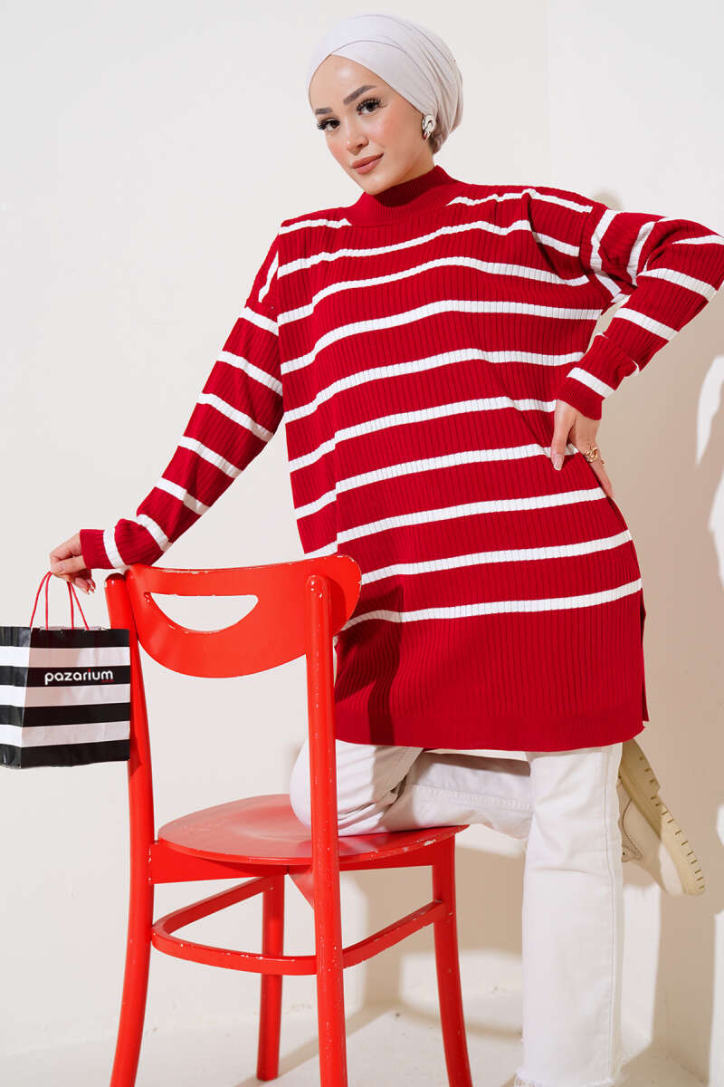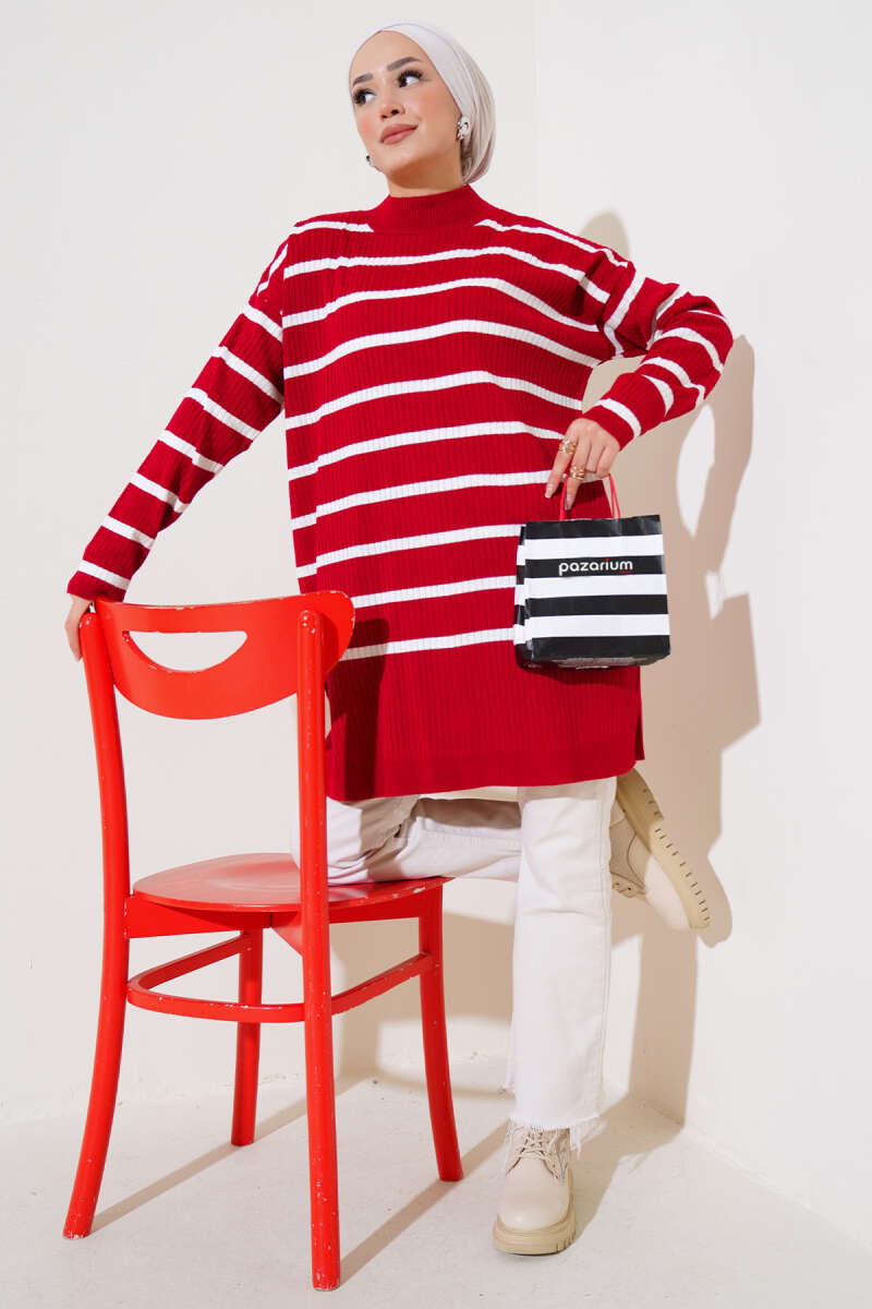 Yatay Çizgi Detaylı Basic Triko Tunik Kahve