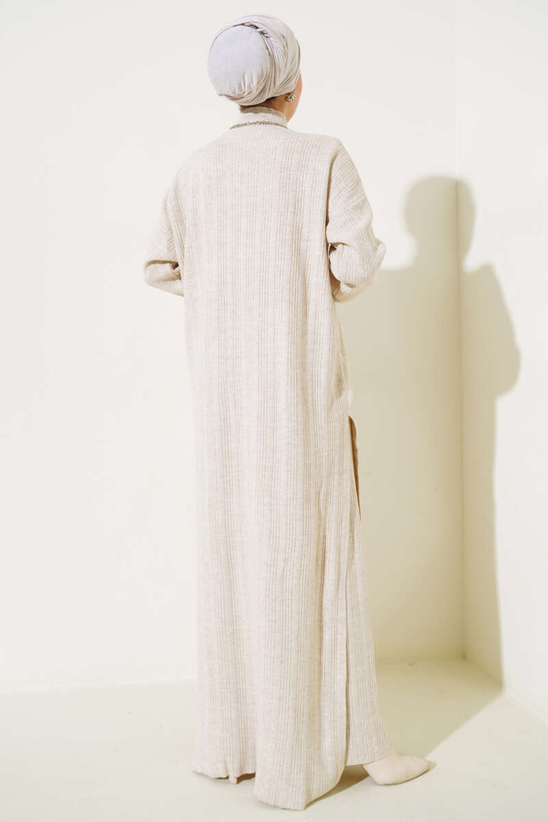 Dikiş Detaylı Basic Triko İkili Takım Bej