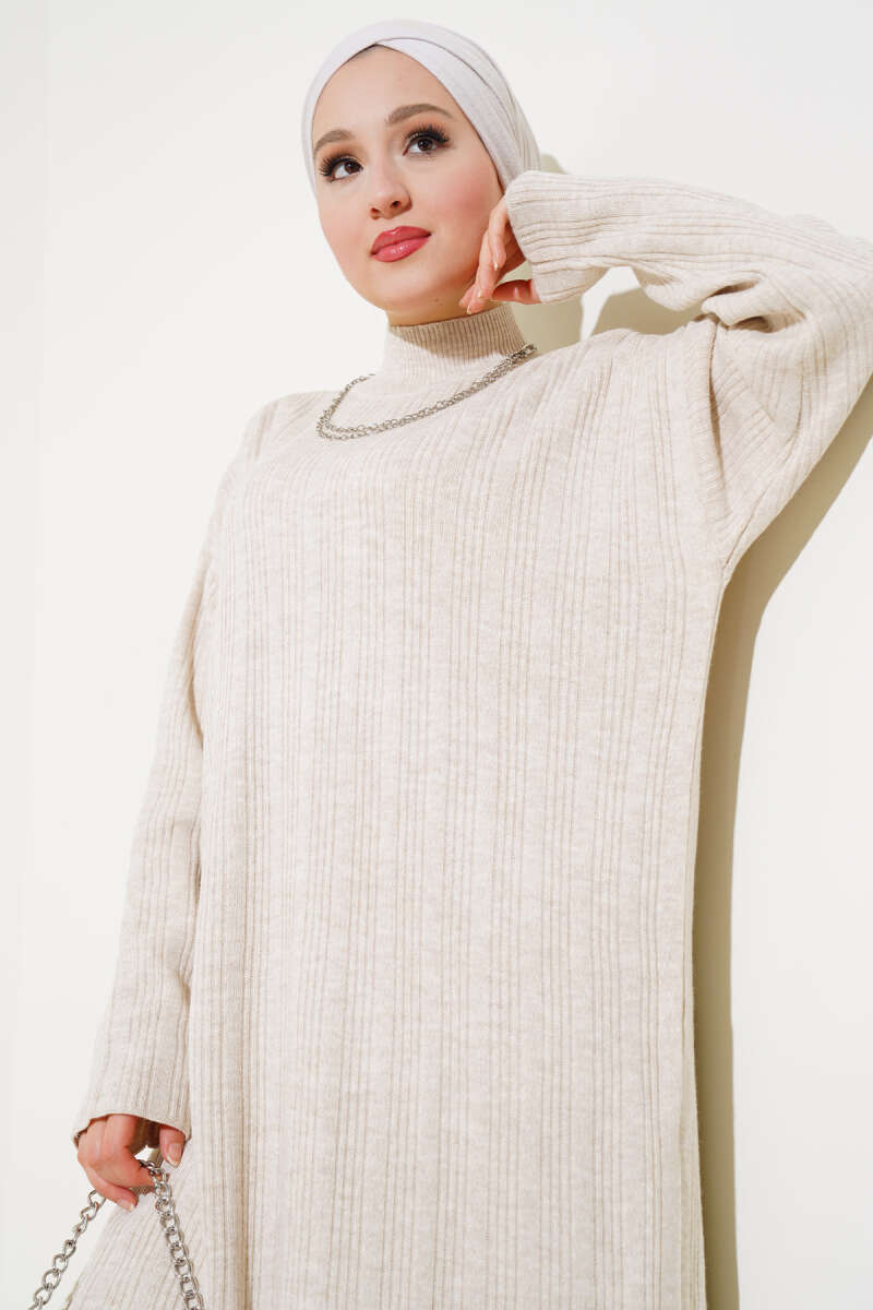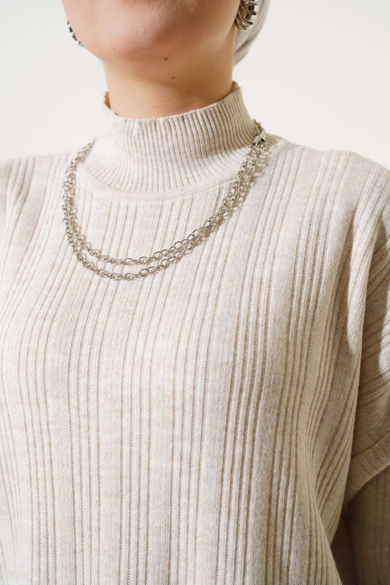 Balon Kol Balıkçı Yaka Triko İkili Takım Taş