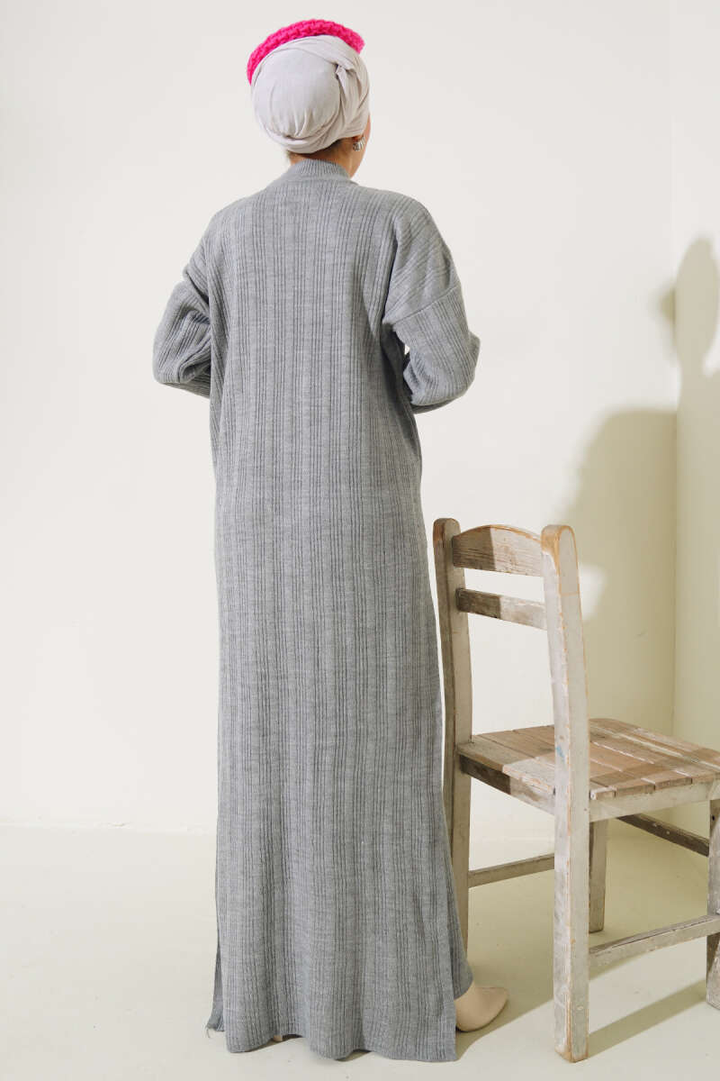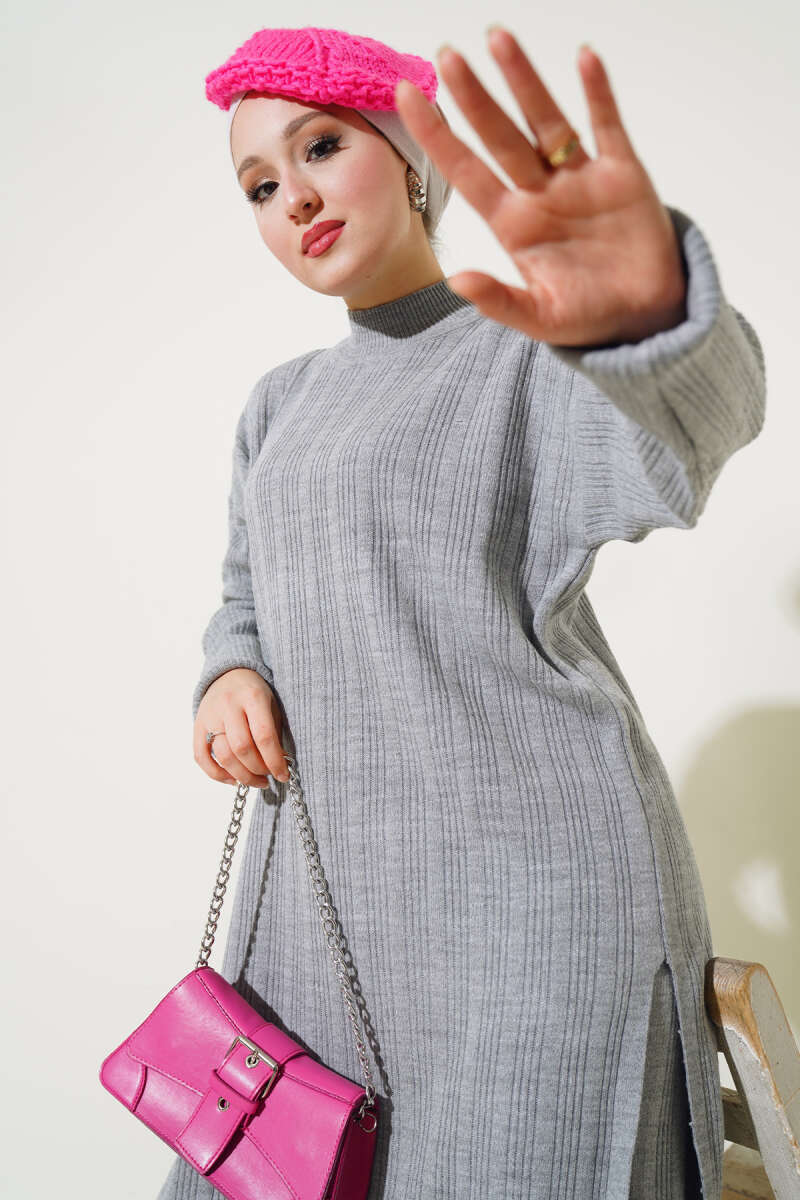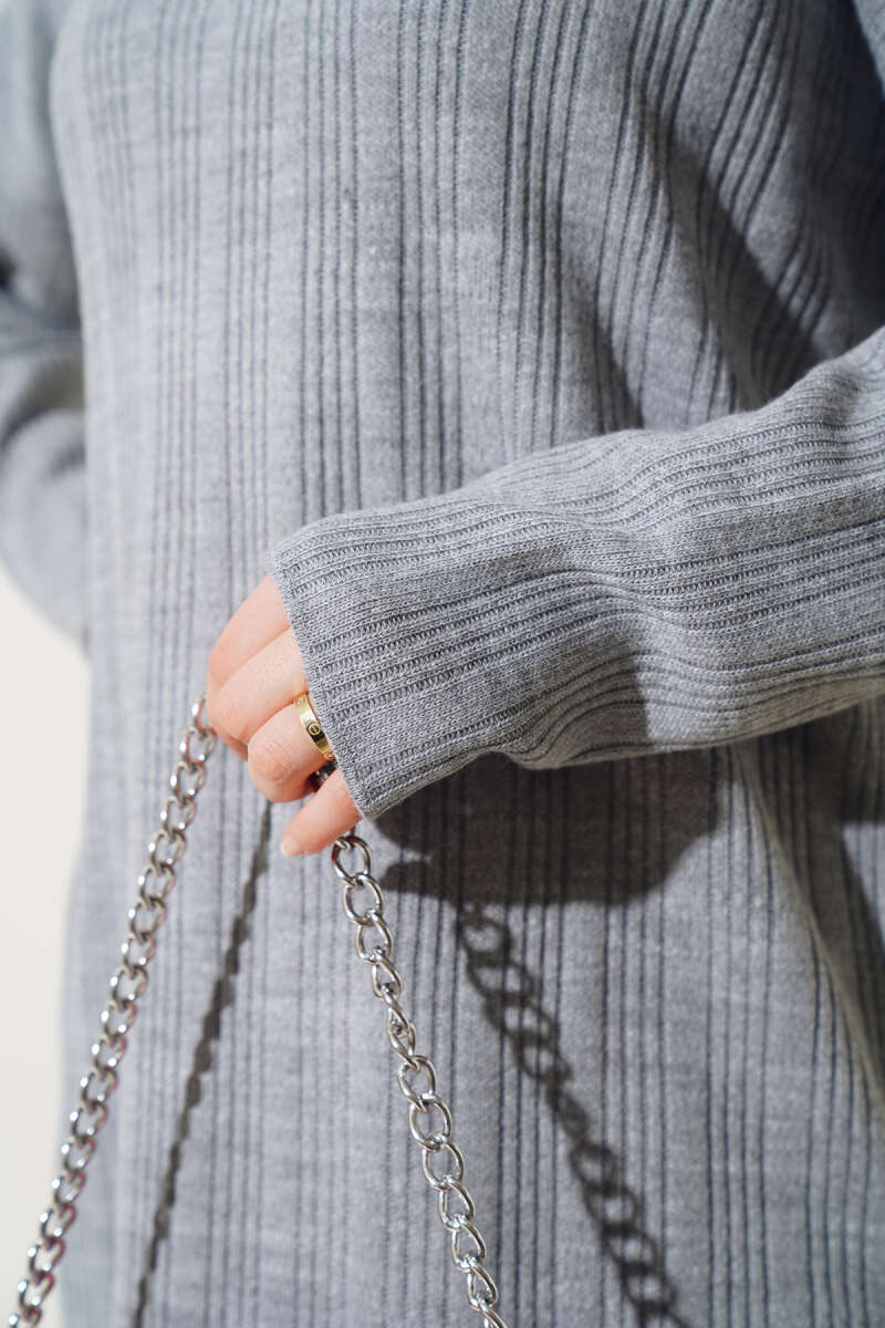 Balon Kol Balıkçı Yaka Triko İkili Takım Gri