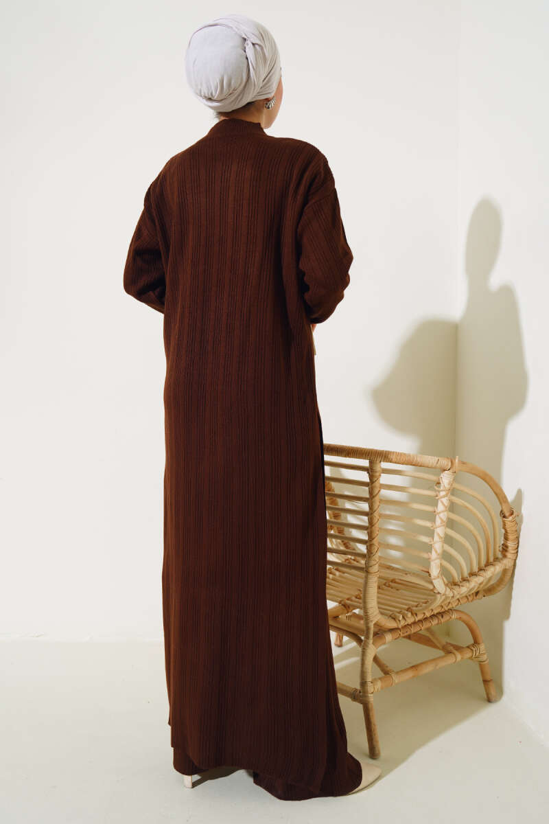 Taşlı Baklava Desen Triko İkili Takım Kahve
