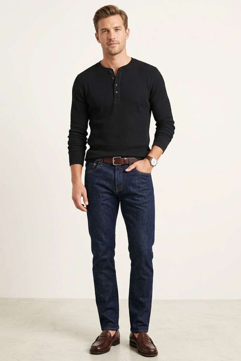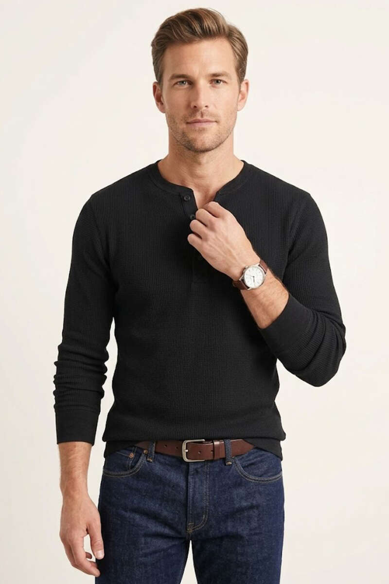 Fitilli Düğmeli Erkek Sweatshirt Lacivert