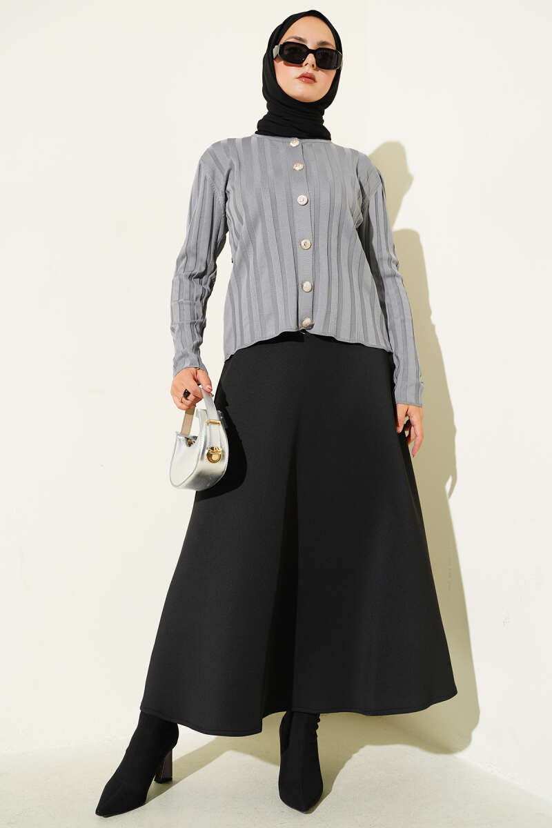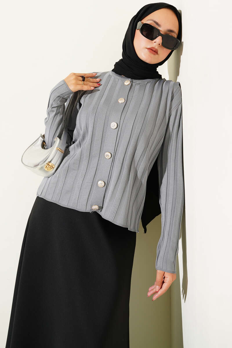 Şal Yaka Pirinç Örgü Triko Hırka Kahve