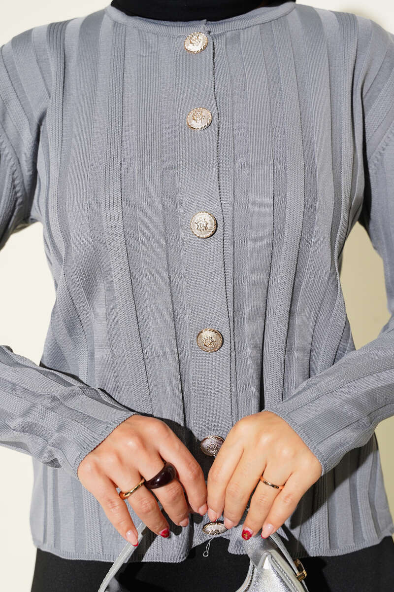 Şal Yaka Pirinç Örgü Triko Hırka Ekru