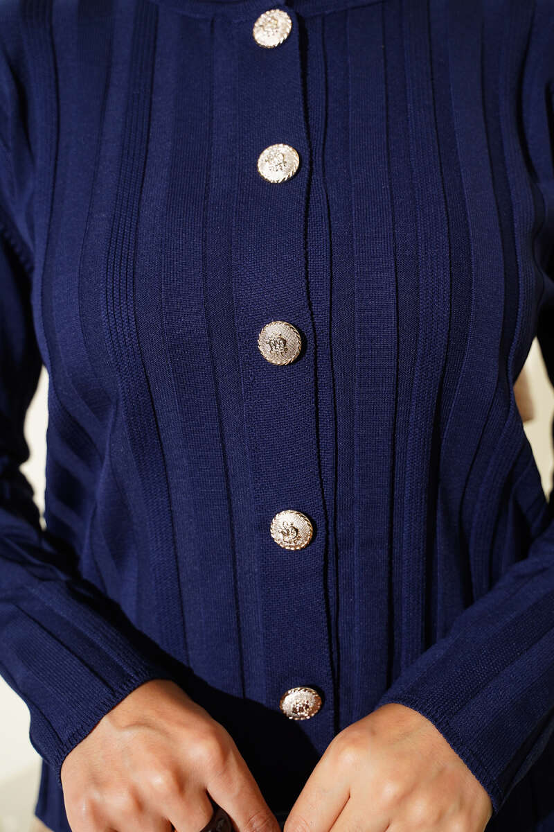 Çiçek Nakışlı Düğmeli Merserize Hırka Lacivert
