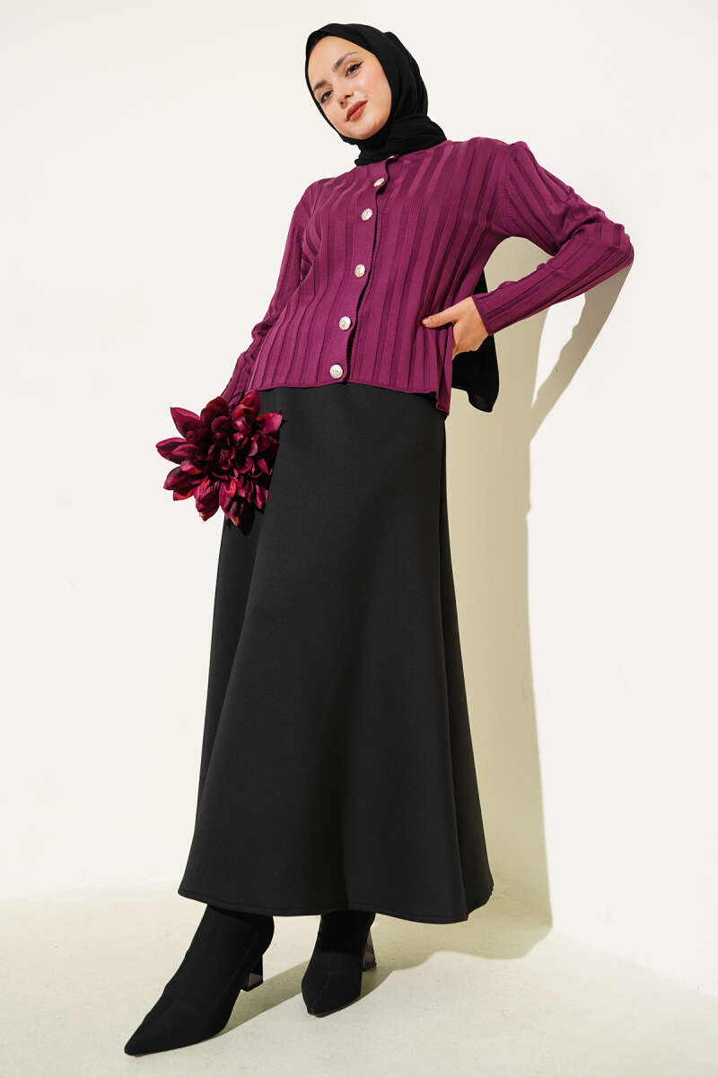 Çiçek Nakışlı Düğmeli Merserize Hırka Siyah