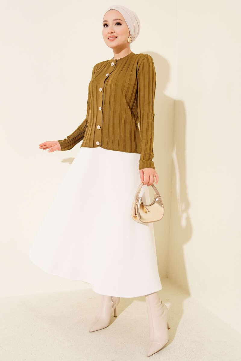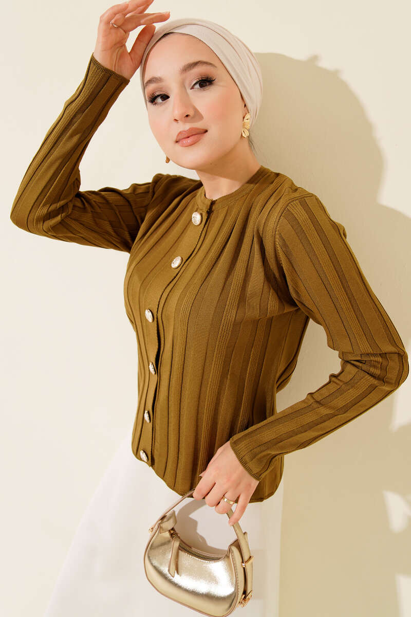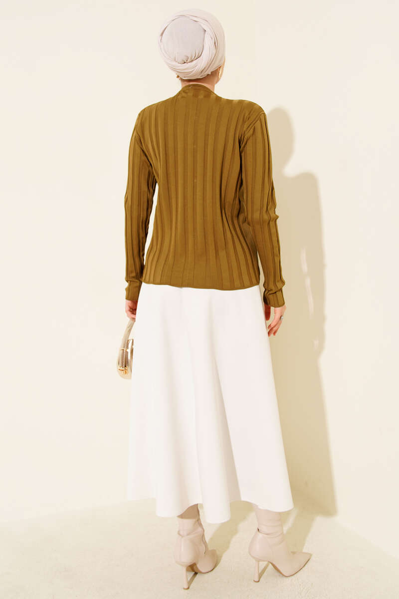 Yandan Dikişli Bağcıklı Hırka Vizon