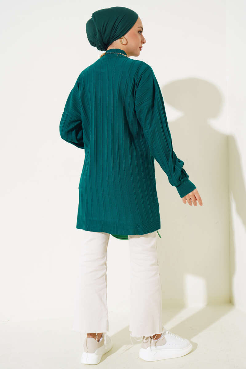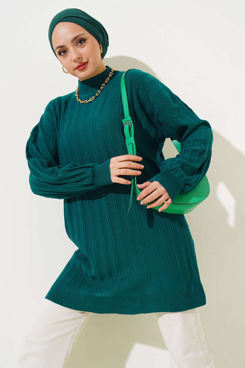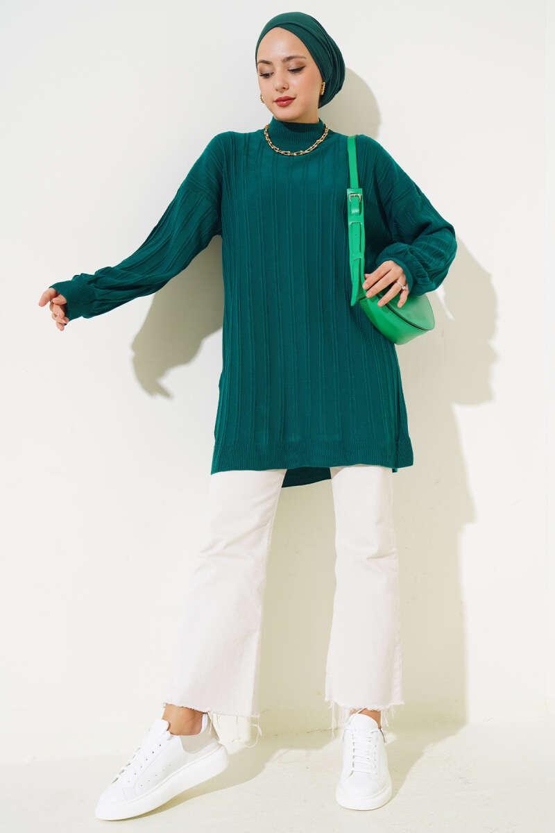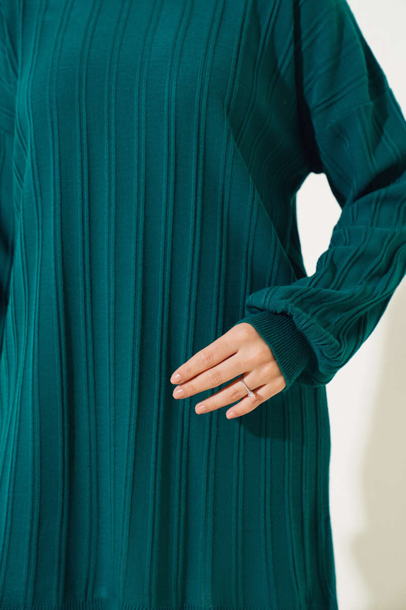 Basic Yatay Çizgi Detaylı Triko Tunik Bordo