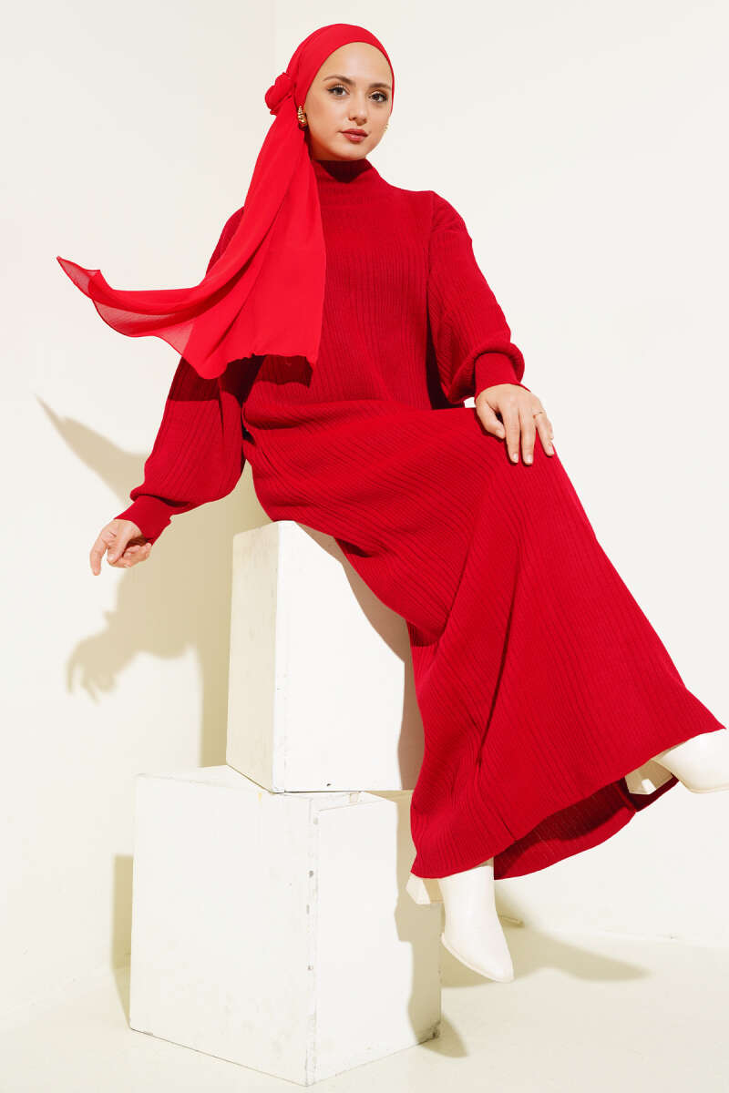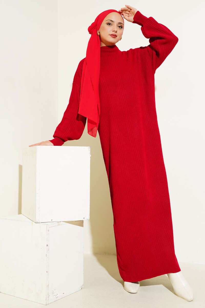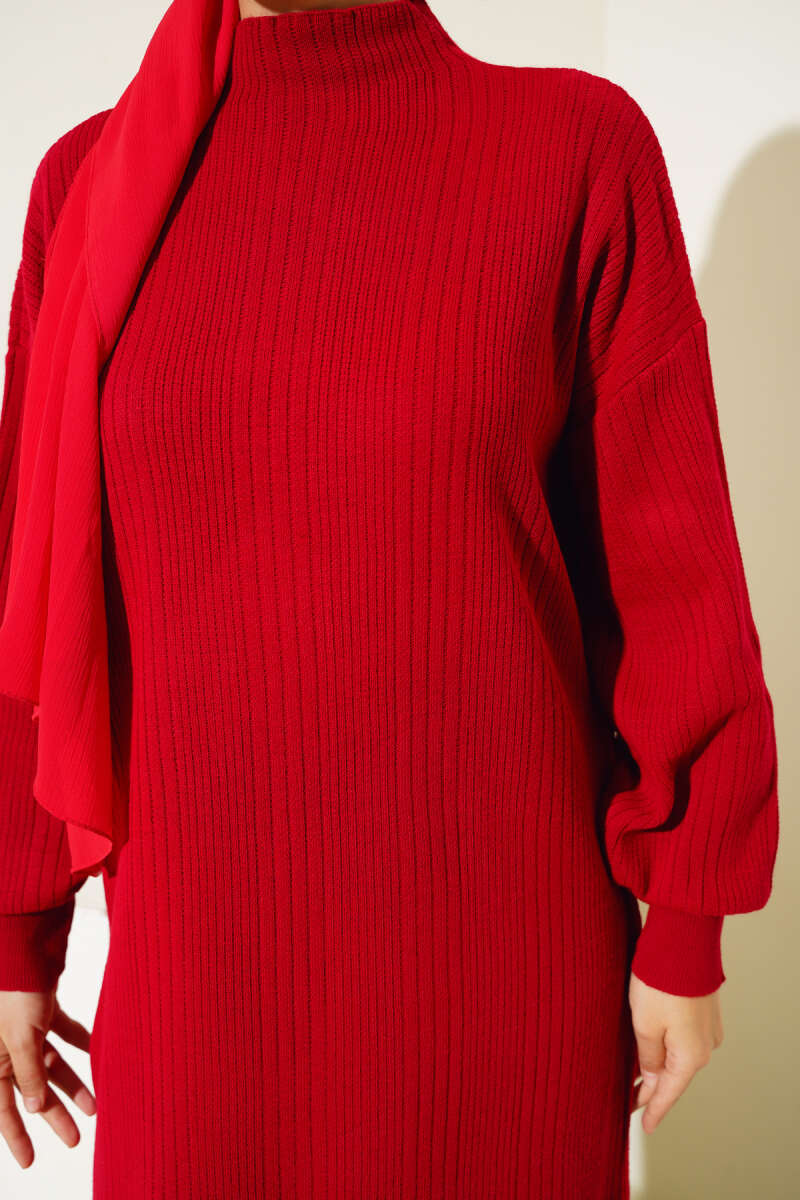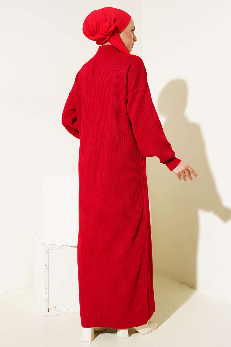 Düğmeli Pelerinli Triko Elbise Takım Bordo