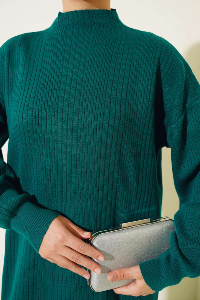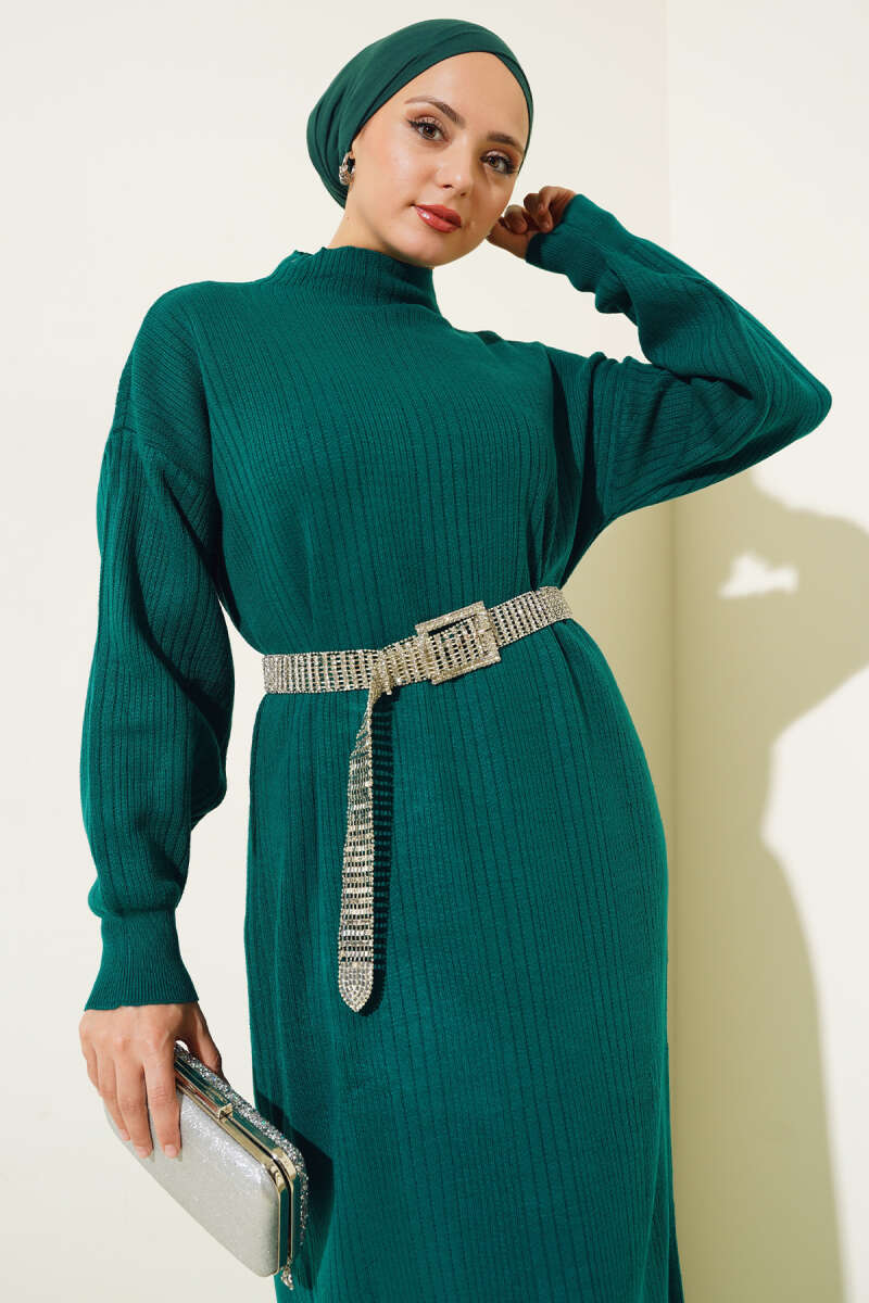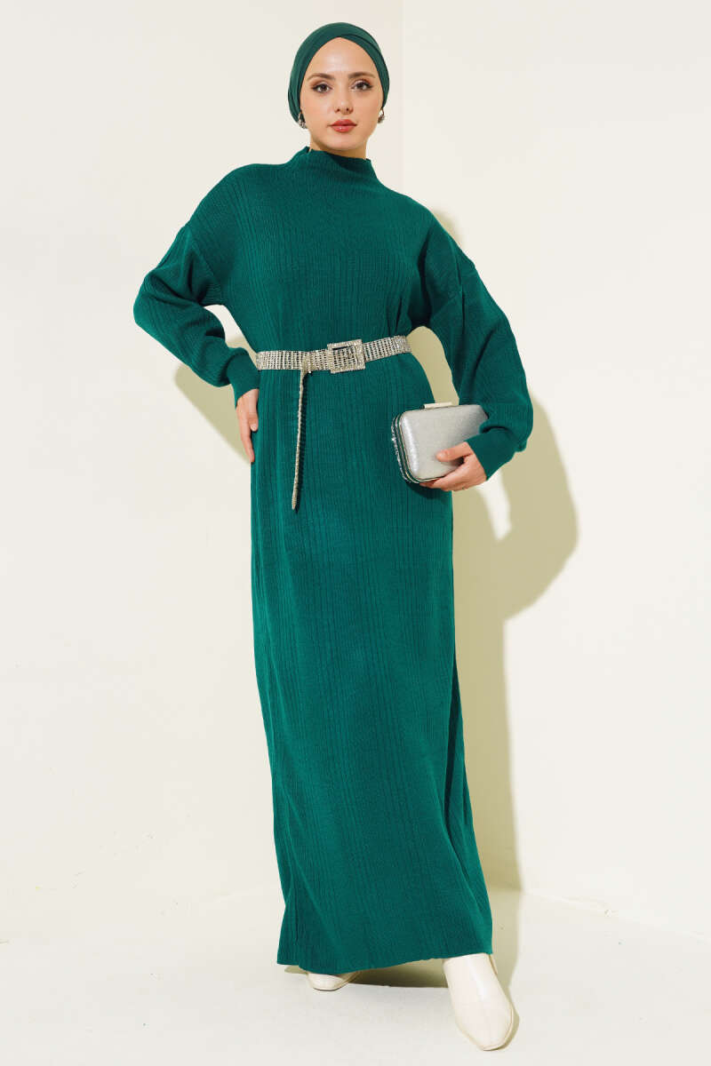 Kolları Fiyonk Detaylı Selanik Elbise Taş